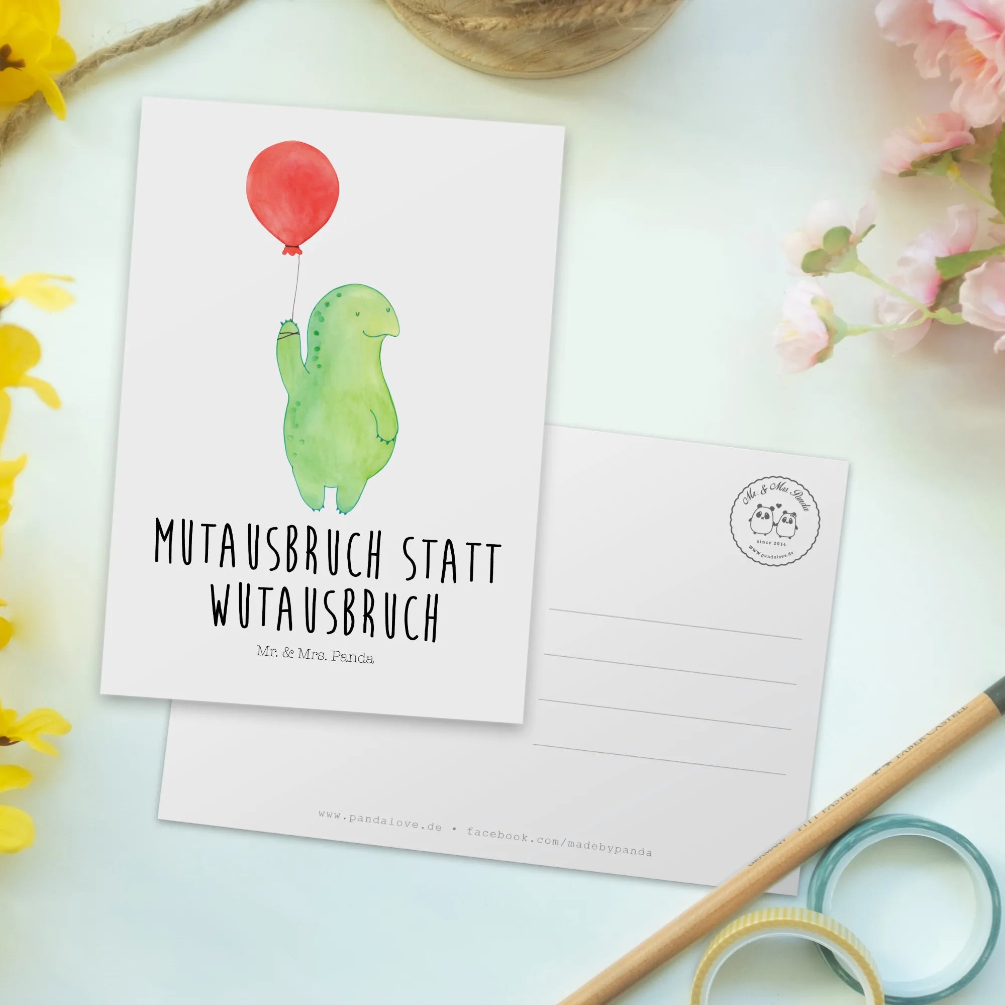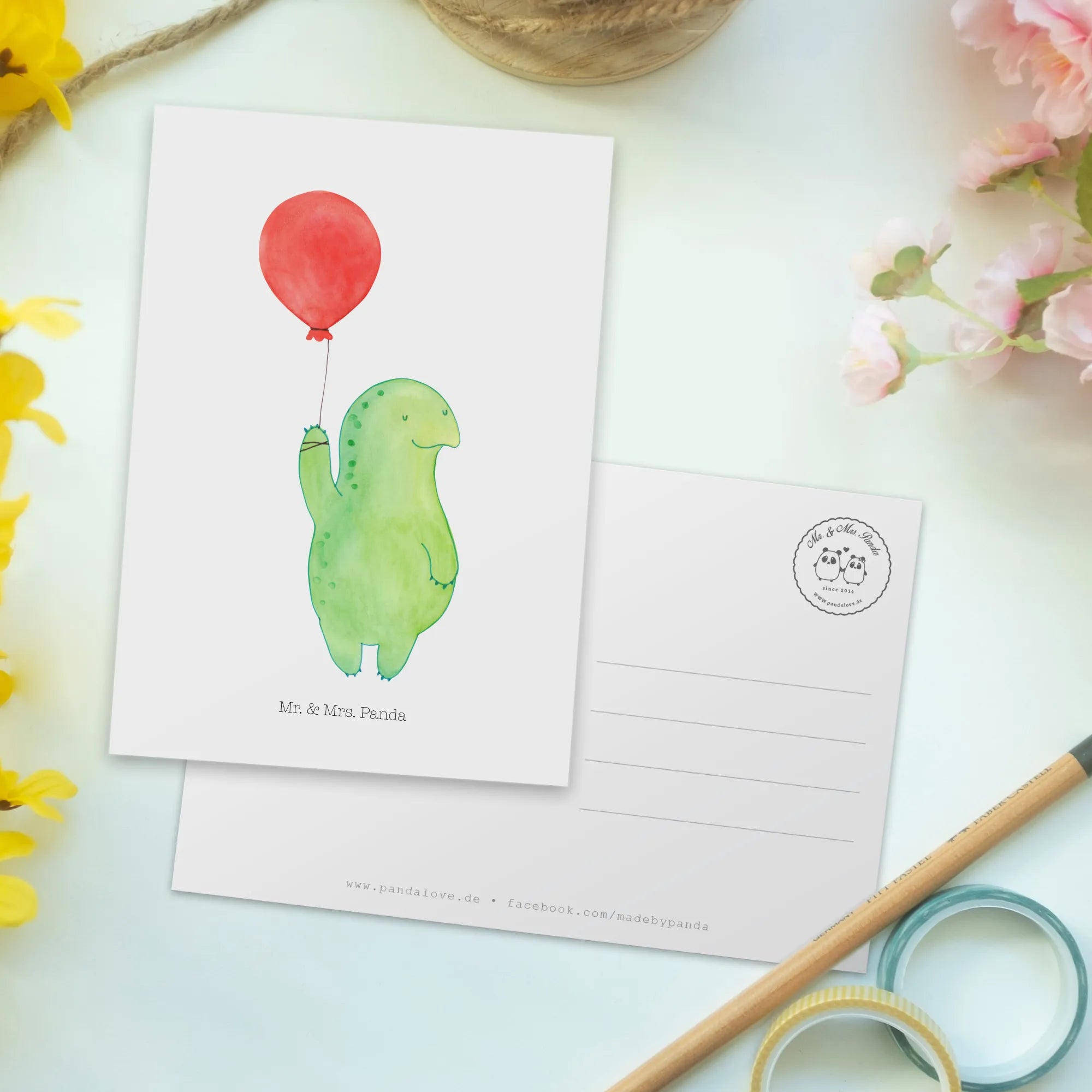 Pocztówka żółw balon - z napisem - Pastelowy żółty