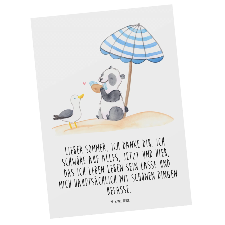 Der hochwertige Karton und der langanhaltende Druck garantieren, dass deine Karte in Erinnerung bleibt. Lass den Sommer in dein Leben und teile die Freude mit deinen Freunden und Familie – die Mr. & Mrs. Panda Postkarte Sommer ist genau das, was du dazu brauchst!