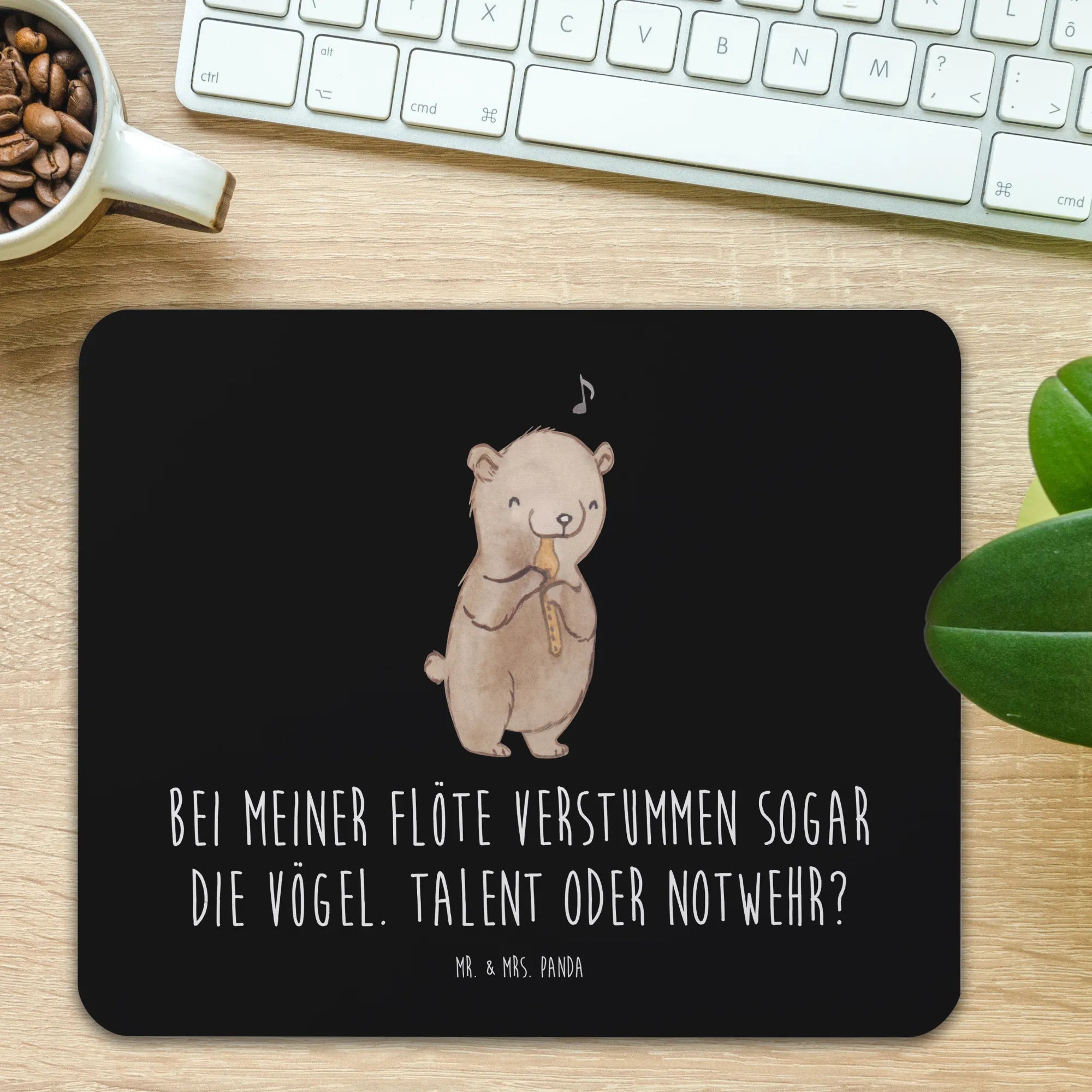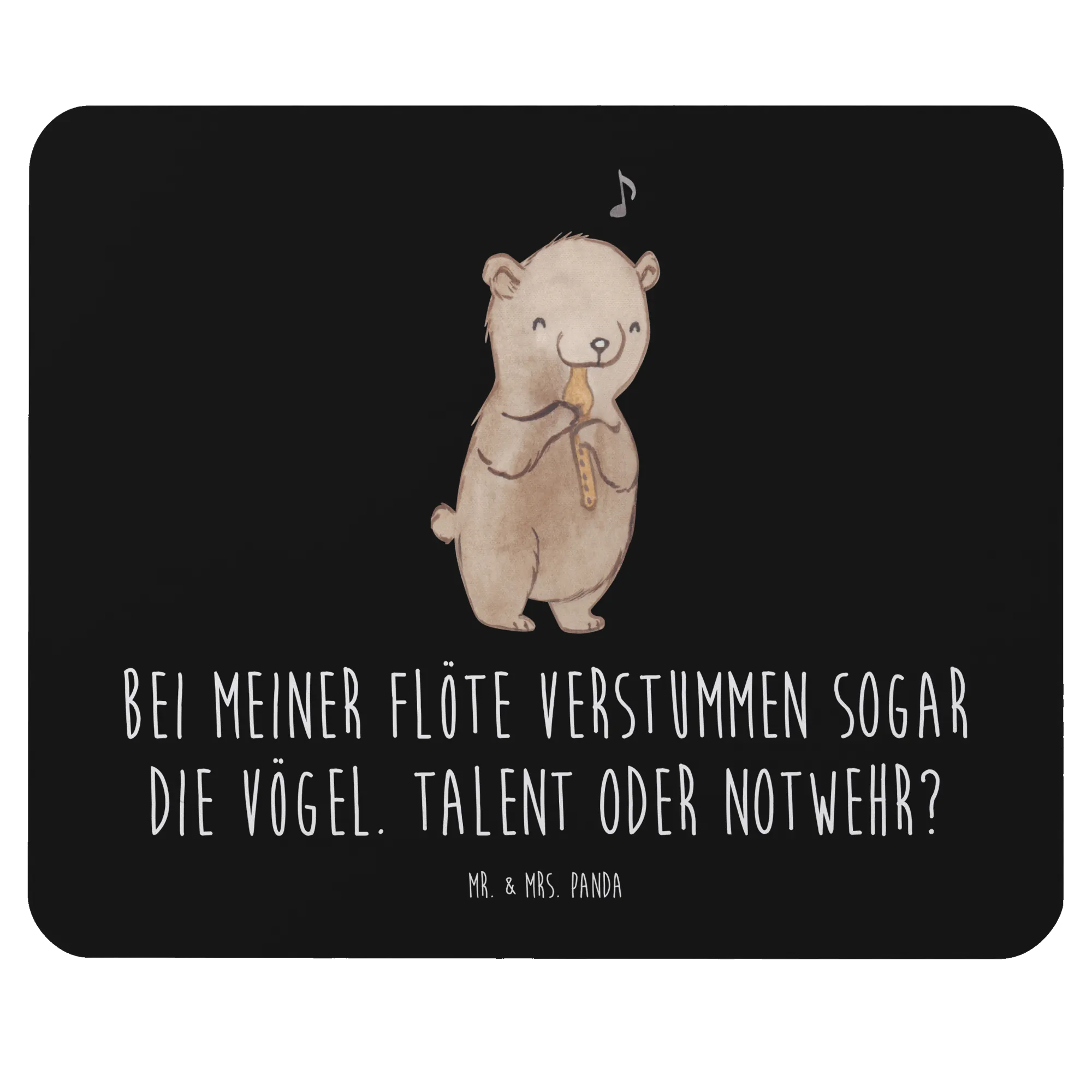 Suchst du nach dem perfekten Geschenk für den Musiker in deinem Leben? Dann ist das Mauspad mit dem süßen Flöten-Motiv von Mr. & Mrs. Panda genau das Richtige! Dieses einzigartige Mauspad aus der Kollektion "Musizieren & Instrumente" vereint Funktionalität mit einem liebevollen Design. Mit dem cleveren Spruch "Bei meiner Flöte verstummen sogar die Vögel. Talent oder Notwehr?" bringt es garantiert ein Lächeln auf die Gesichter von Flötenspielern und Musikliebhabern.