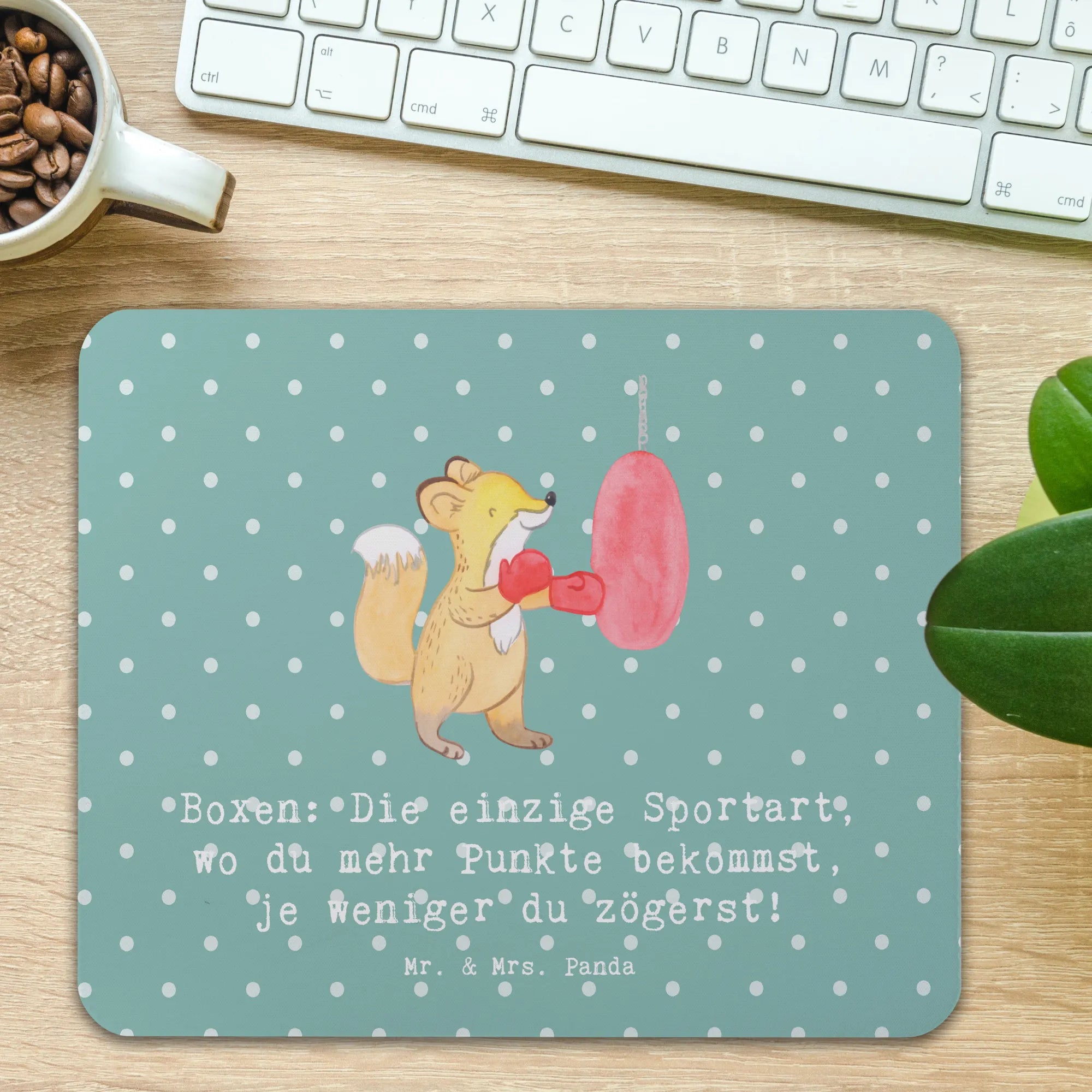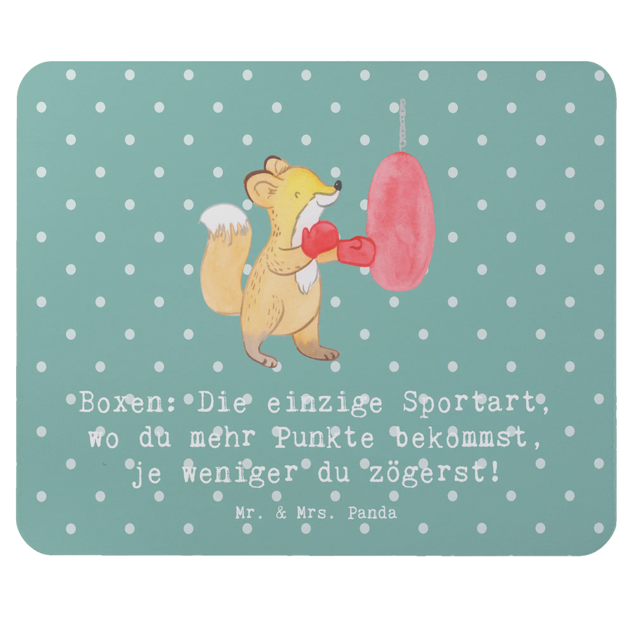 Das Mr. & Mrs. Panda Mauspad mit dem Motiv Boxen ist mehr als nur ein einfacher Unterlage für Deine Computermaus – es ist ein Ausdruck Deiner Leidenschaft für den Sport! Mit dem humorvollen Slogan "Boxen: Die einzige Sportart, wo du mehr Punkte bekommst, je weniger du zögerst!" bringt dieses Mauspad frischen Wind in Dein Homeoffice oder Büro und sorgt für gute Laune während der Arbeit.