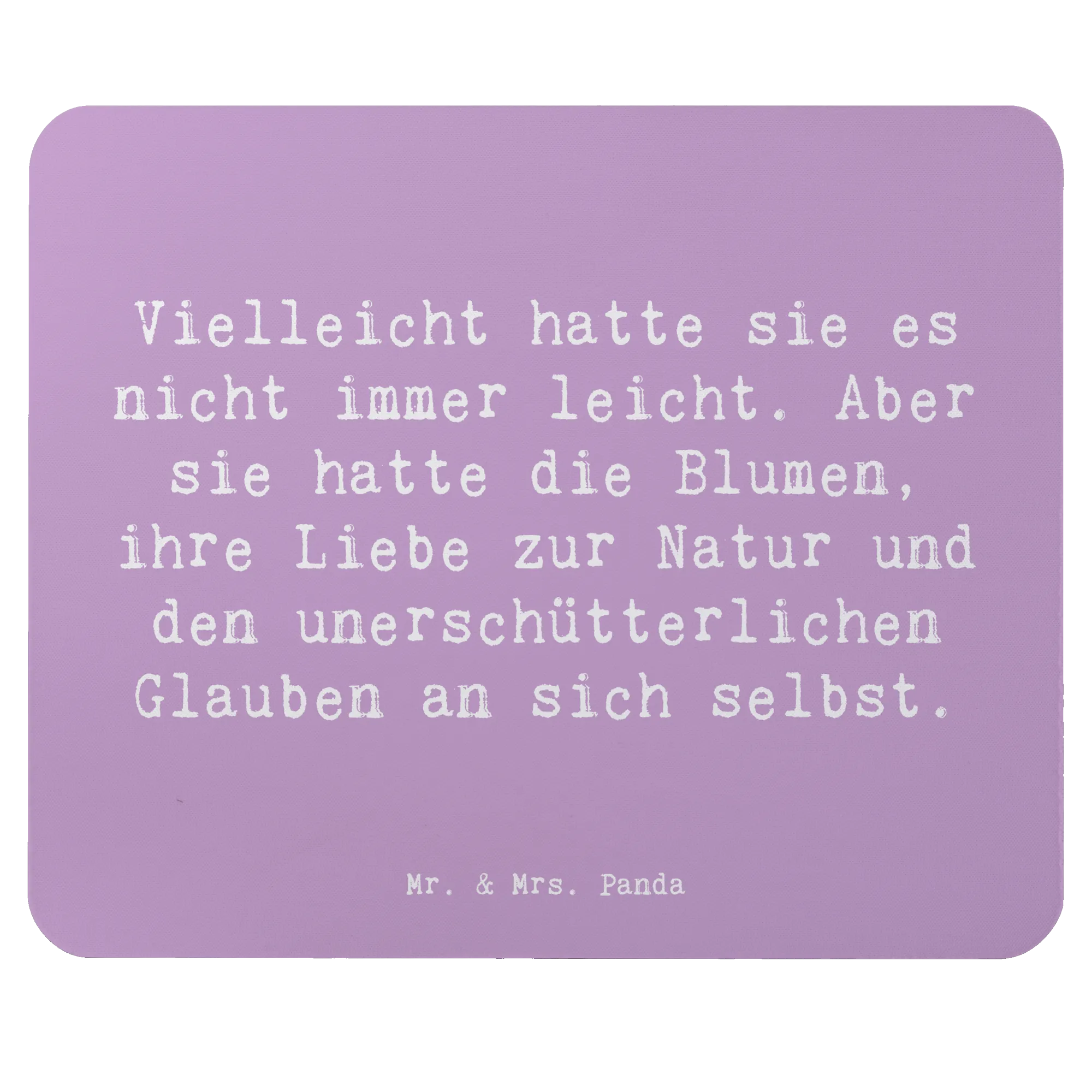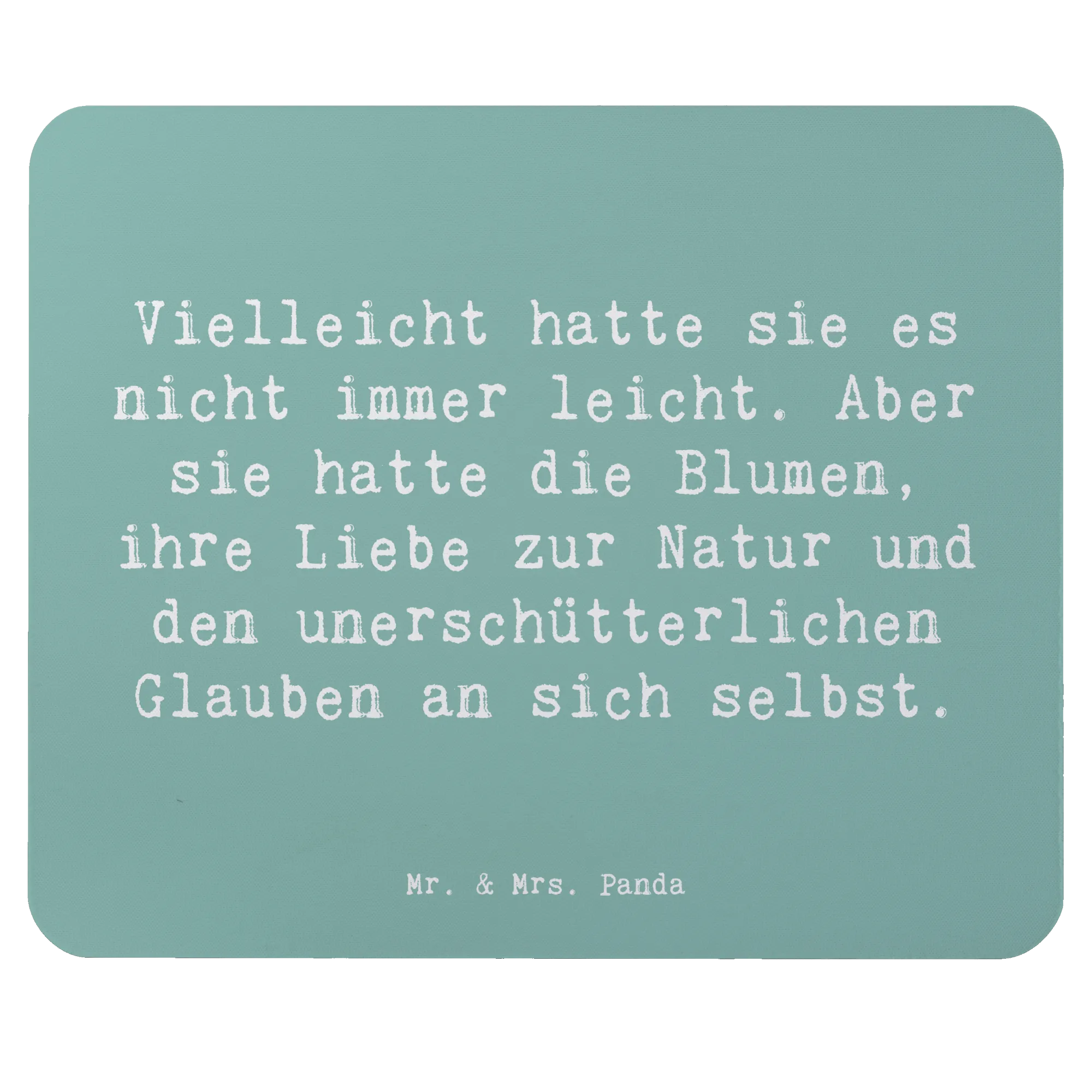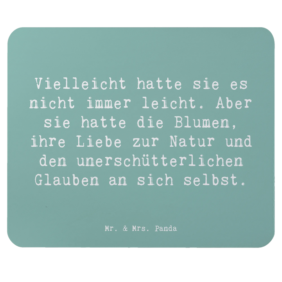 Das besondere Design überzeugt mit dem Spruch: "Vielleicht hatte sie es nicht immer leicht. Aber sie hatte die Blumen, ihre Liebe zur Natur und den unerschütterlichen Glauben an sich selbst." Diese Botschaft der Hoffnung läd dazu ein, täglich neue Motivation zu finden und an sich selbst zu glauben. Ideal als Geschenk für Freunde, Familie oder sogar für dich selbst, um den eigenen Arbeitsplatz mit etwas Positivem zu verschönern.