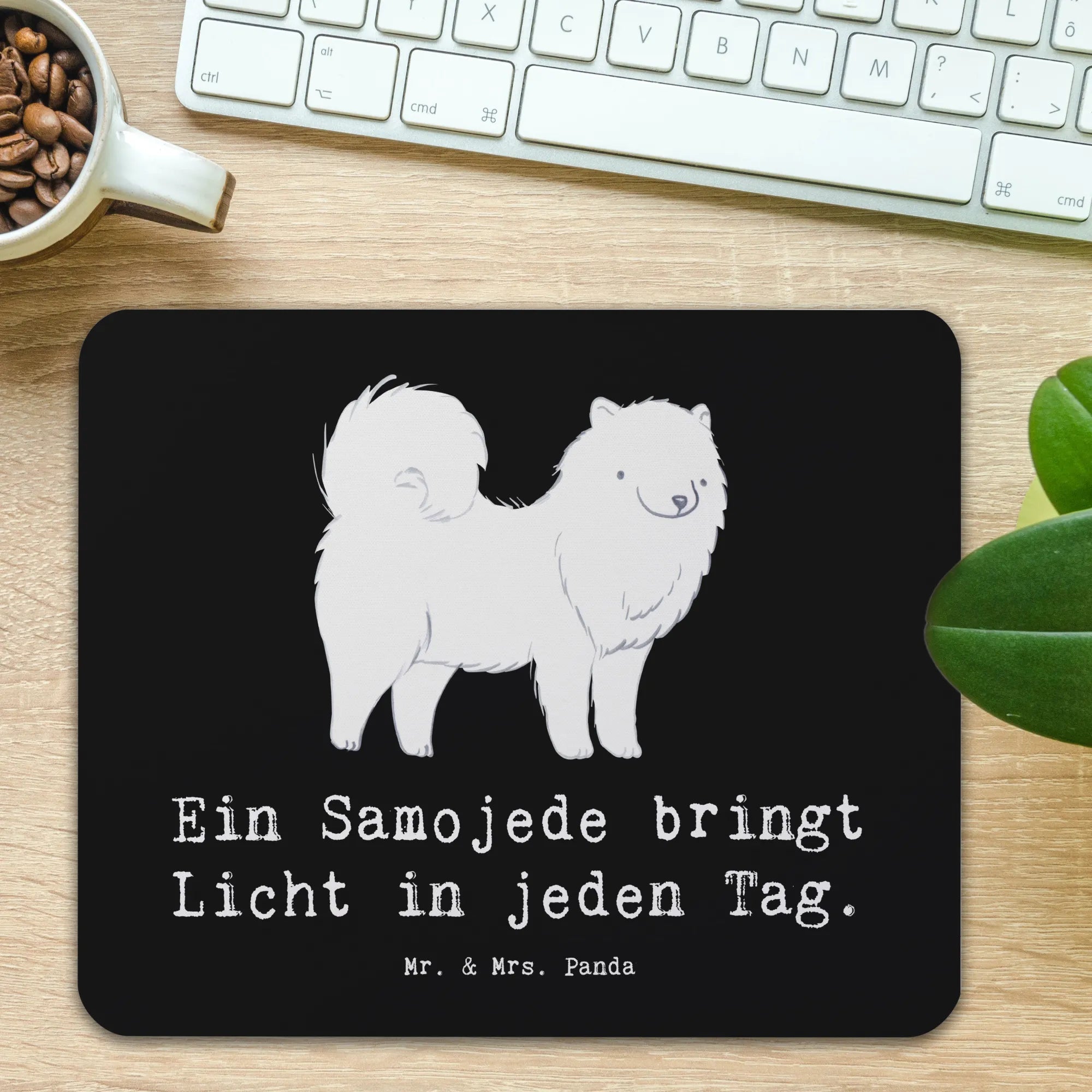 Das wunderschöne Mauspad mit dem süßen Samojede-Motiv von Mr. & Mrs. Panda ist der perfekte Begleiter für jeden Hundeliebhaber und macht das Arbeiten am Computer nicht nur einfacher, sondern auch ein Stückchen bunter! Mit dem Slogan 'Ein Samojede bringt Licht in jeden Tag' zaubert es Dir garantiert ein Lächeln ins Gesicht und erinnert Dich daran, wie viel Freude unsere vierbeinigen Freunde in unser Leben bringen.