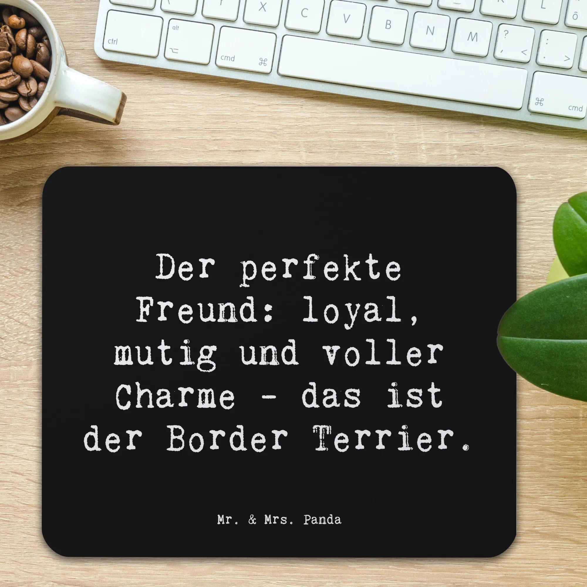 Entdecke das ultimative Mauspad für den Hundeliebhaber – das Border Terrier Mauspad von Mr. & Mrs. Panda! Dieses außergewöhnliche Mauspad ist nicht nur ein praktisches Accessoire für Deinen Arbeitsplatz oder das Homeoffice, sondern auch ein liebevolles Statement für alle, die die charmante Hunderasse Border Terrier schätzen. Der Slogan "Der perfekte Freund: loyal, mutig und voller Charme - das ist der Border Terrier." unterstreicht die besonderen Eigenschaften dieses treuen Begleiters und zaubert Dir jeden Tag ein Lächeln ins Gesicht.