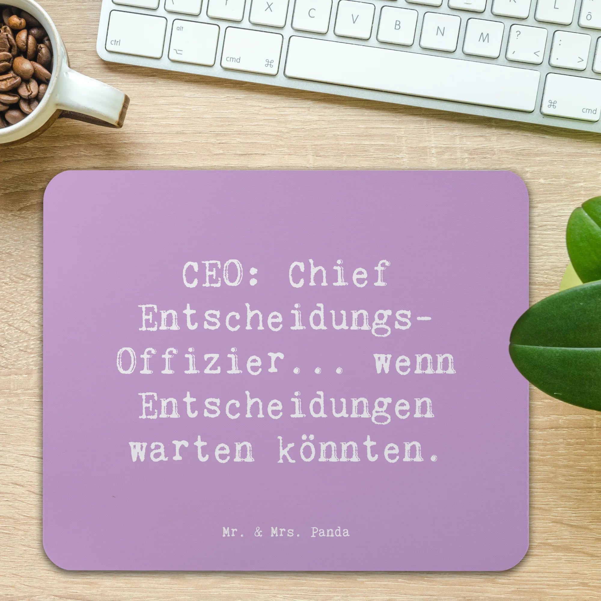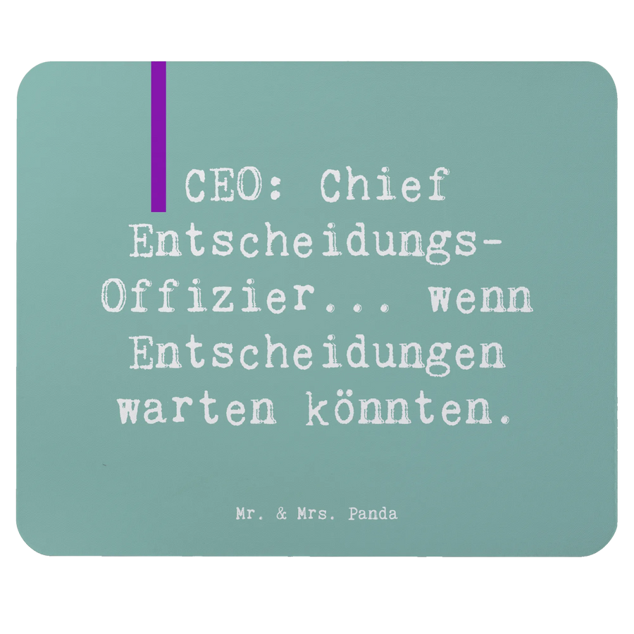 Entdecke das perfekte Geschenk für alle Geschäftsführer und Führungskräfte! Das wundervolle Mauspad von Mr. & Mrs. Panda mit dem Motiv "CEO: Chief Entscheidungs-Offizier... wenn Entscheidungen warten könnten" ist nicht nur ein praktisches Accessoire für Deinen Arbeitsplatz, sondern auch eine humorvolle Hommage an die herausfordernden Entscheidungen des Unternehmensalltags.
