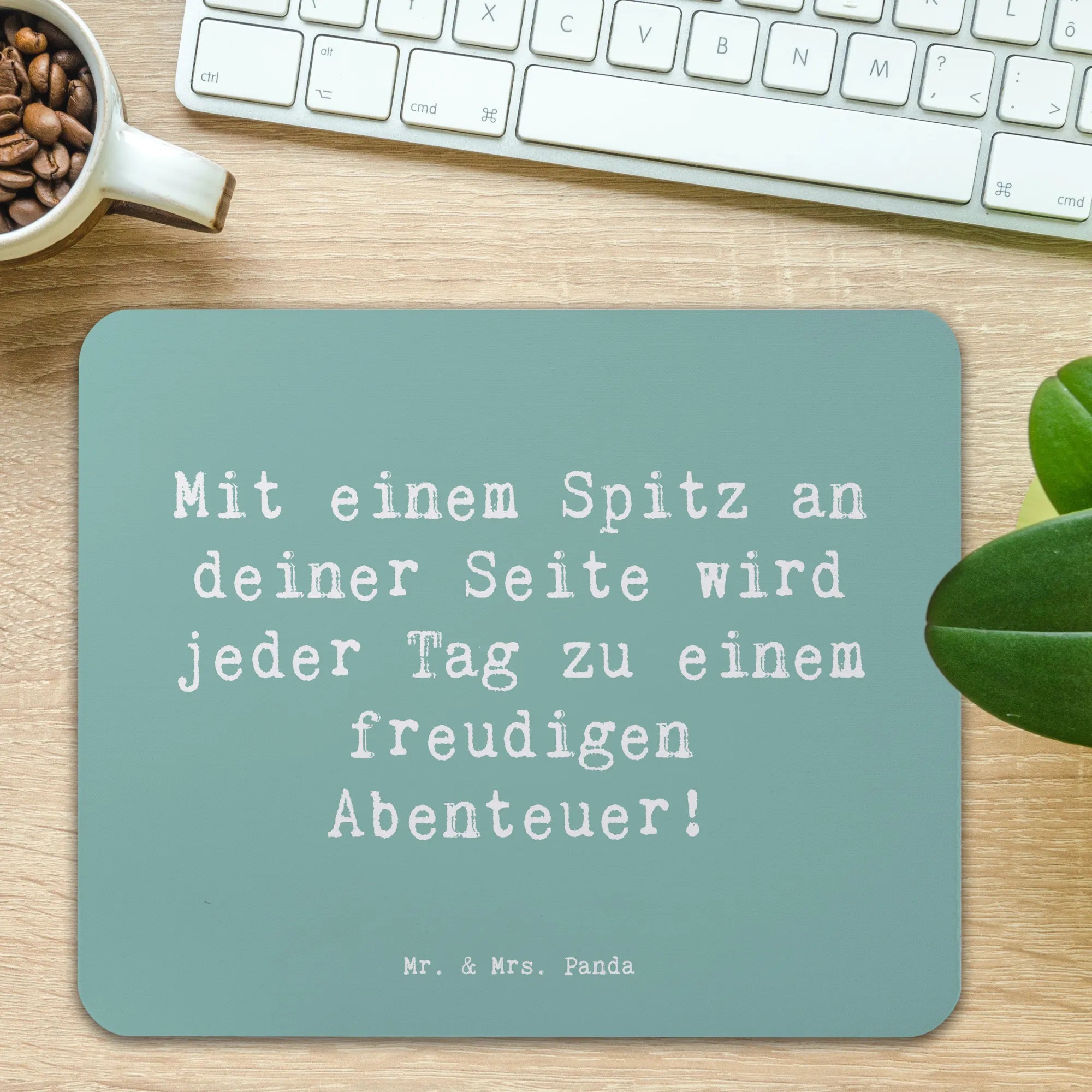 Ein wunderschönes und angenehmes Mauspad von Mr. & Mrs. Panda, das das perfekte Geschenk für jeden Hundefan ist! Mit dem niedlichen Motiv eines Spitzes, bedruckt mit dem freudigen Slogan: "Mit einem Spitz an deiner Seite wird jeder Tag zu einem freudigen Abenteuer!" sorgst Du für gute Laune im Büro oder Homeoffice.