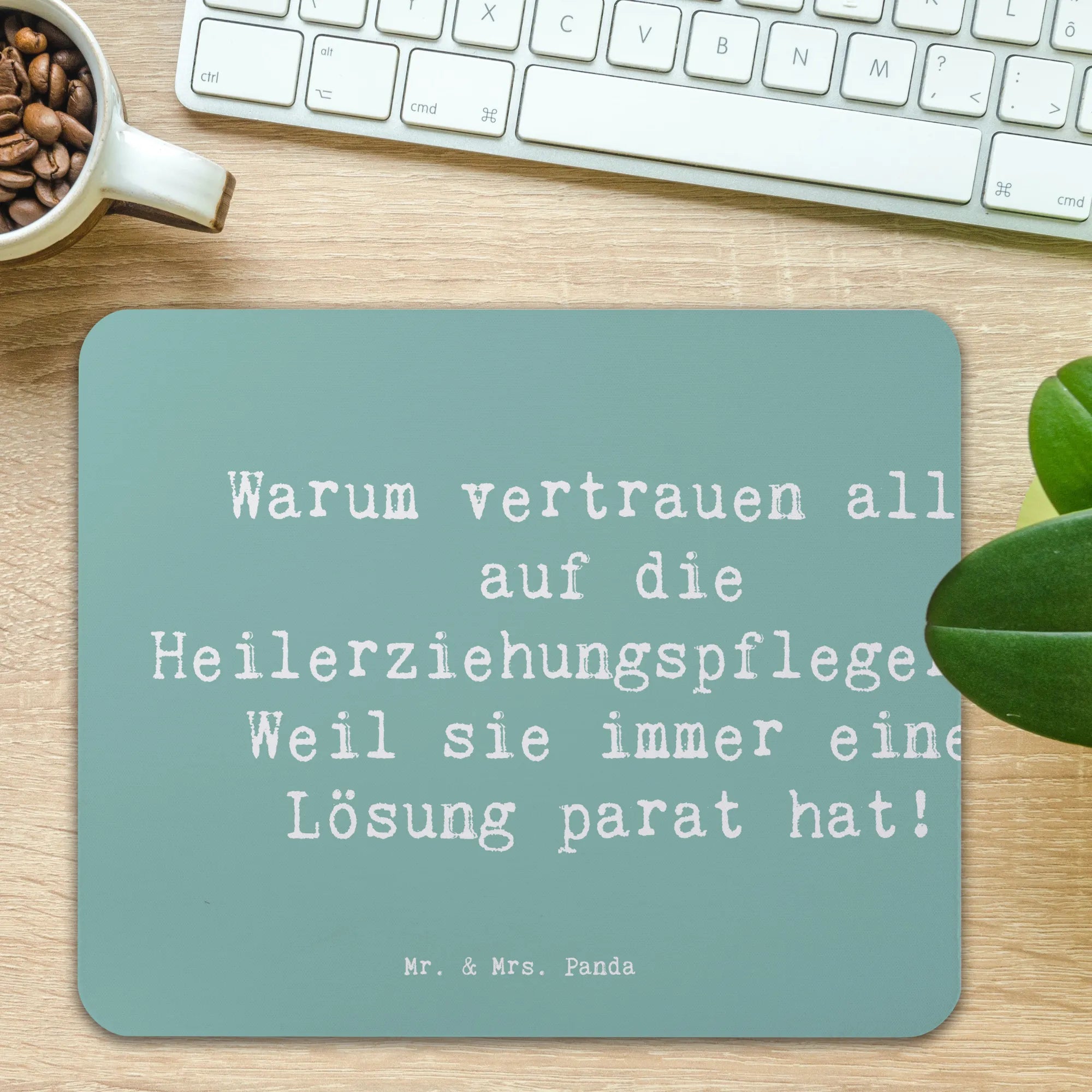 Entdecke das perfekte Mauspad für alle Heilerziehungspflegerinnen und Heilerziehungspfleger! Dieses wunderschöne, handgezeichnete Mauspad von Mr. & Mrs. Panda bringt nicht nur Farbe auf Deinen Schreibtisch, sondern sorgt auch für einen angenehmen Arbeitsalltag. Mit dem inspirierenden Spruch "Warum vertrauen alle auf die Heilerziehungspflegerin? Weil sie immer eine Lösung parat hat!" ist dieses Mauspad das ideale Geschenk für jeden Anlass, sei es zum Berufsabschluss, zum Geburtstag oder einfach als kleine Aufmerksamkeit für Kollegen und Freunde.