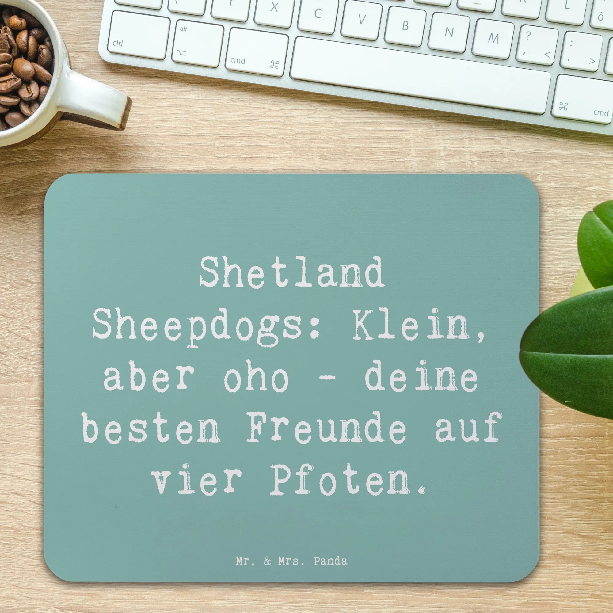 Das Mauspad mit dem süßen Motiv des Shetland Sheepdogs von Mr. & Mrs. Panda ist nicht nur ein praktisches Computerzubehör, sondern auch ein ganz besonderes Geschenk für alle Hundefans! Mit seinem fröhlichen Design und dem liebevollen Spruch "Shetland Sheepdogs: Klein, aber oho - deine besten Freunde auf vier Pfoten." bringt es Freude in jeden Arbeitsalltag oder ins Homeoffice.