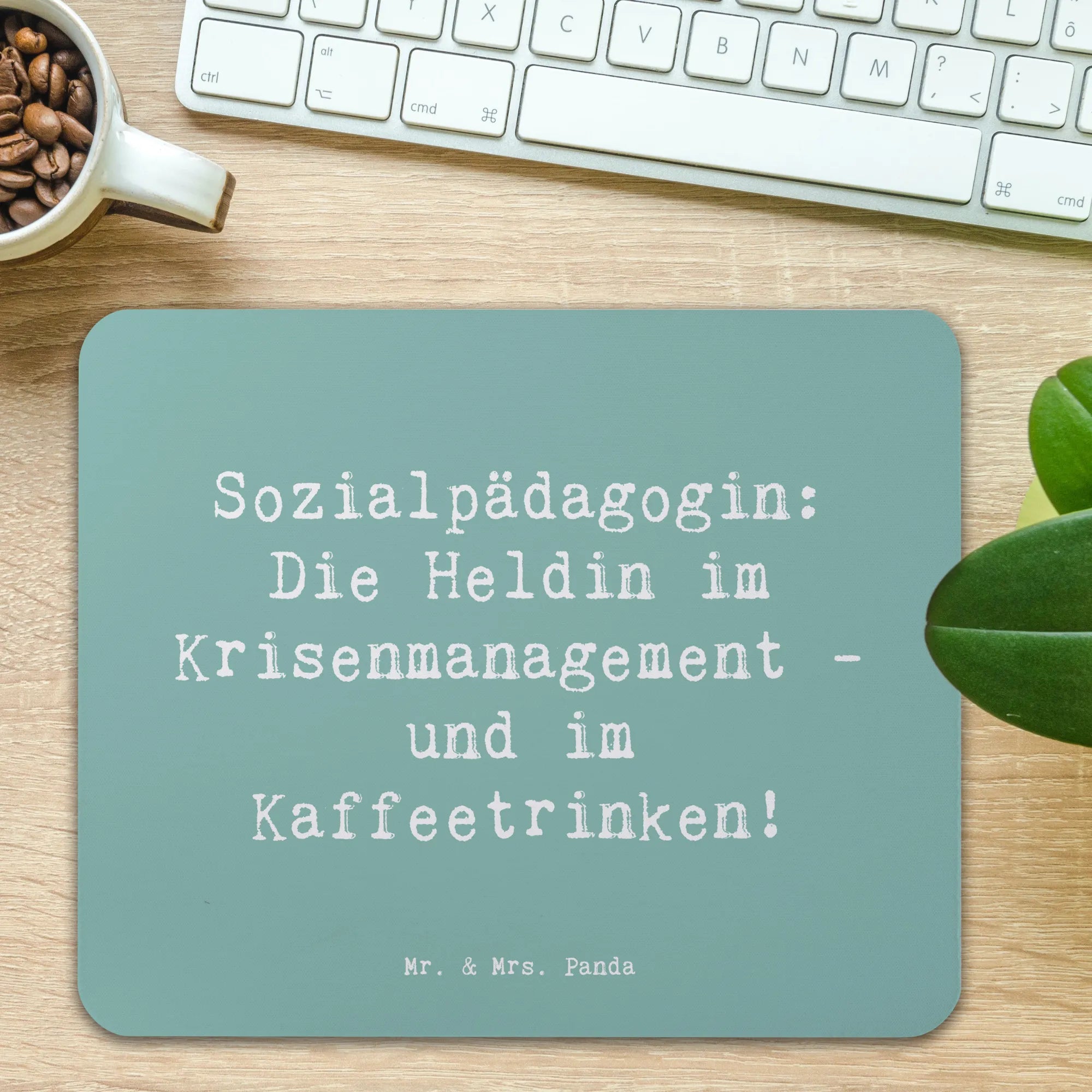 Suchst Du nach dem perfekten Geschenk für eine Sozialpädagogin, die tagtäglich Großartiges leistet? Dann ist das Mauspad "Sozialpädagogin: Die Heldin im Krisenmanagement - und im Kaffeetrinken!" von Mr. & Mrs. Panda genau das Richtige!
