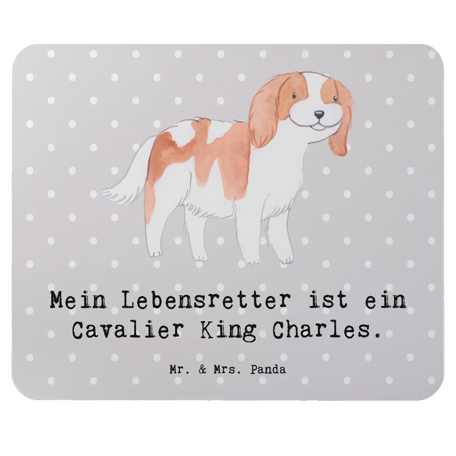 Podkładka pod mysz Cavalier King Charles Spaniel ratownik - z napisem - Szary Pastel