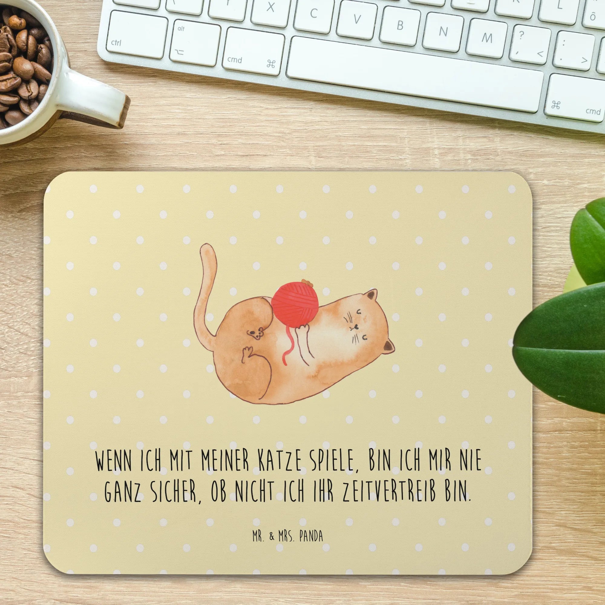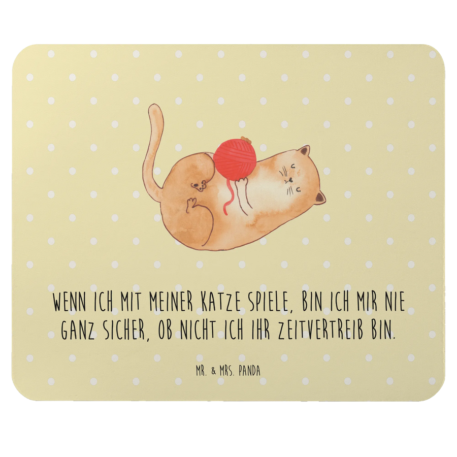 Podkładka pod mysz kot wełna - z napisem - Pastelowy żółty