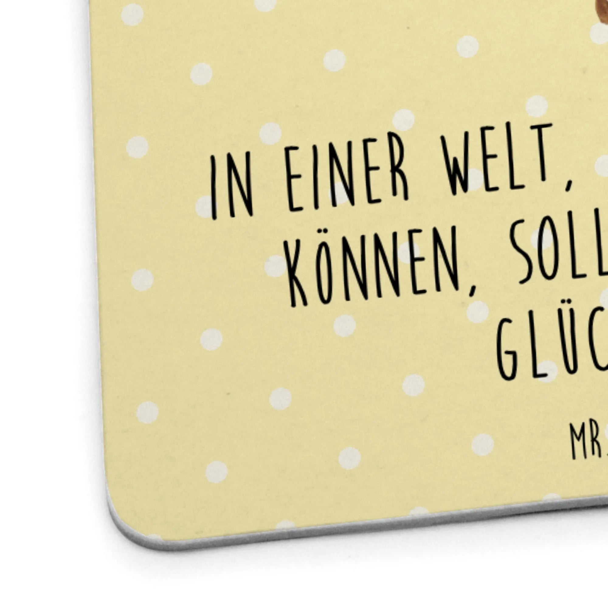 Suchst du ein charmantes, praktisches und fröhliches Gastgeschenk Hochzeit? Unser quadratischer Bierdeckel "Fledermaus Flügel" aus der Small World Kollektion von Mr. & Mrs. Panda ist ein echter Blickfang. Das liebevoll aquarellierte Motive einer niedlichen Fledermaus kombiniert mit dem Spruch „In einer Welt, in der wir alles sein können, sollten wir vor allem glücklich sein.“ sorgt für gute Laune und zaubert ein Lächeln auf jede Gesichterrunde.