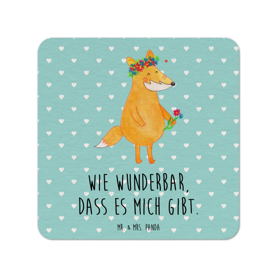 Ob für das Blumenmädchen auf der Hochzeit oder als süßes Geschenk für die beste Freundin, dieser Bierdeckel zeigt, dass du an sie denkst. Er eignet sich perfekt für den Sommer, um bei entspannter Stimmung gemeinsam mit Freunden oder Familie anstoßen zu können. Ein originelles Gastgeschenk für jede Feier, das die Erinnerungen an einen besonderen Abend lebendig hält. Umrandet von einem strahlenden Türkis Pastell ist der "Fuchs Blumenliebe" Bierdeckel nicht nur nützlich, sondern auch ein weiteres wunderbar gestaltetes Stück aus der Fuchs Kollektion von Mr. & Mrs. Panda.
