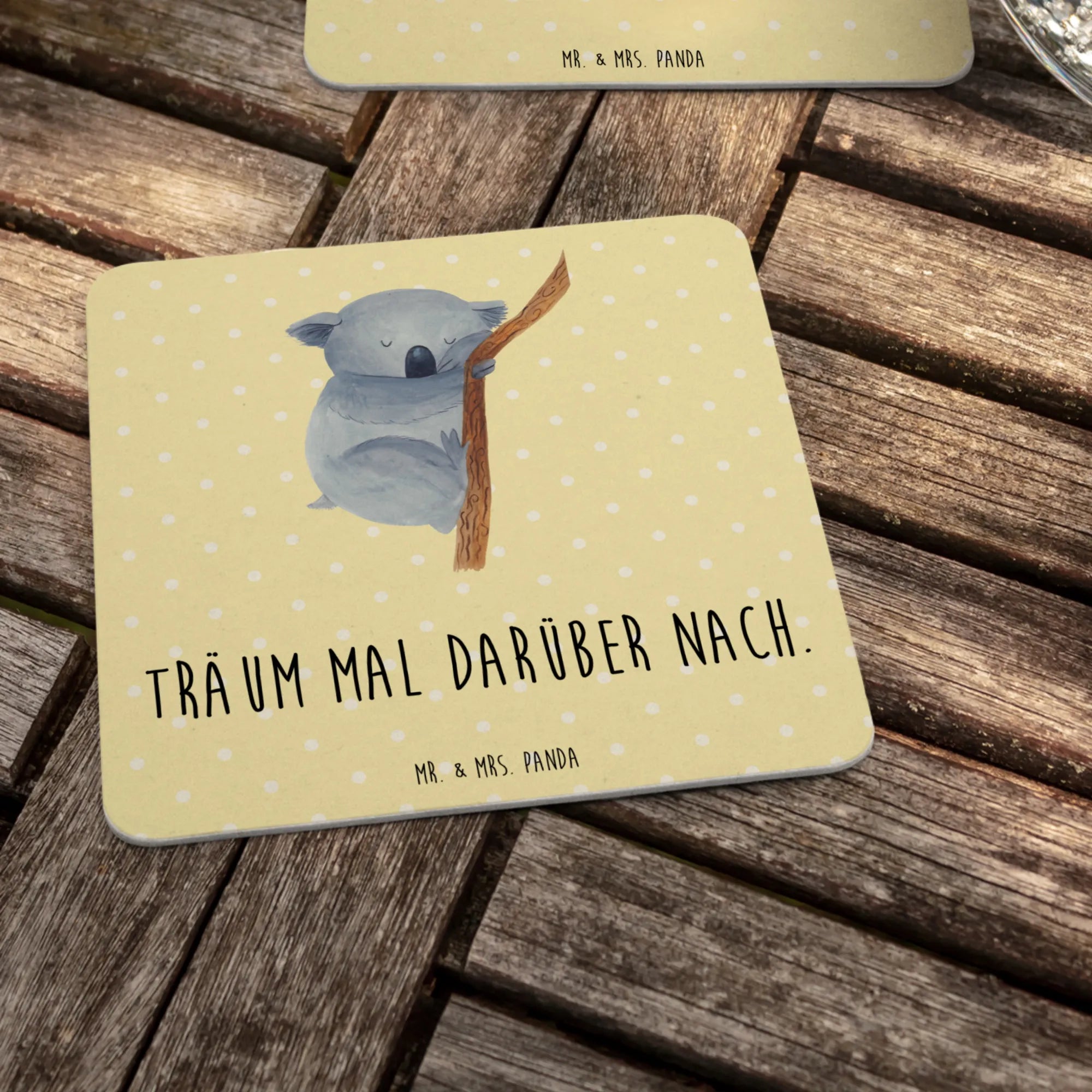 Die perfekten Bierdeckel von Mr. & Mrs. Panda sind nicht nur ein praktisches, sondern auch ein ganz besonderes Accessoire für jeden Tisch! Schau dir diese wundervollen Bierdeckel mit dem niedlichen Koalabär-Motiv an. Das Motiv zeigt einen schlafenden Koalabären, der träumerisch an einem Ast festhält und dabei sanft von Eukalyptusblättern träumt. Wer könnte da nicht ins Schwelgen geraten?