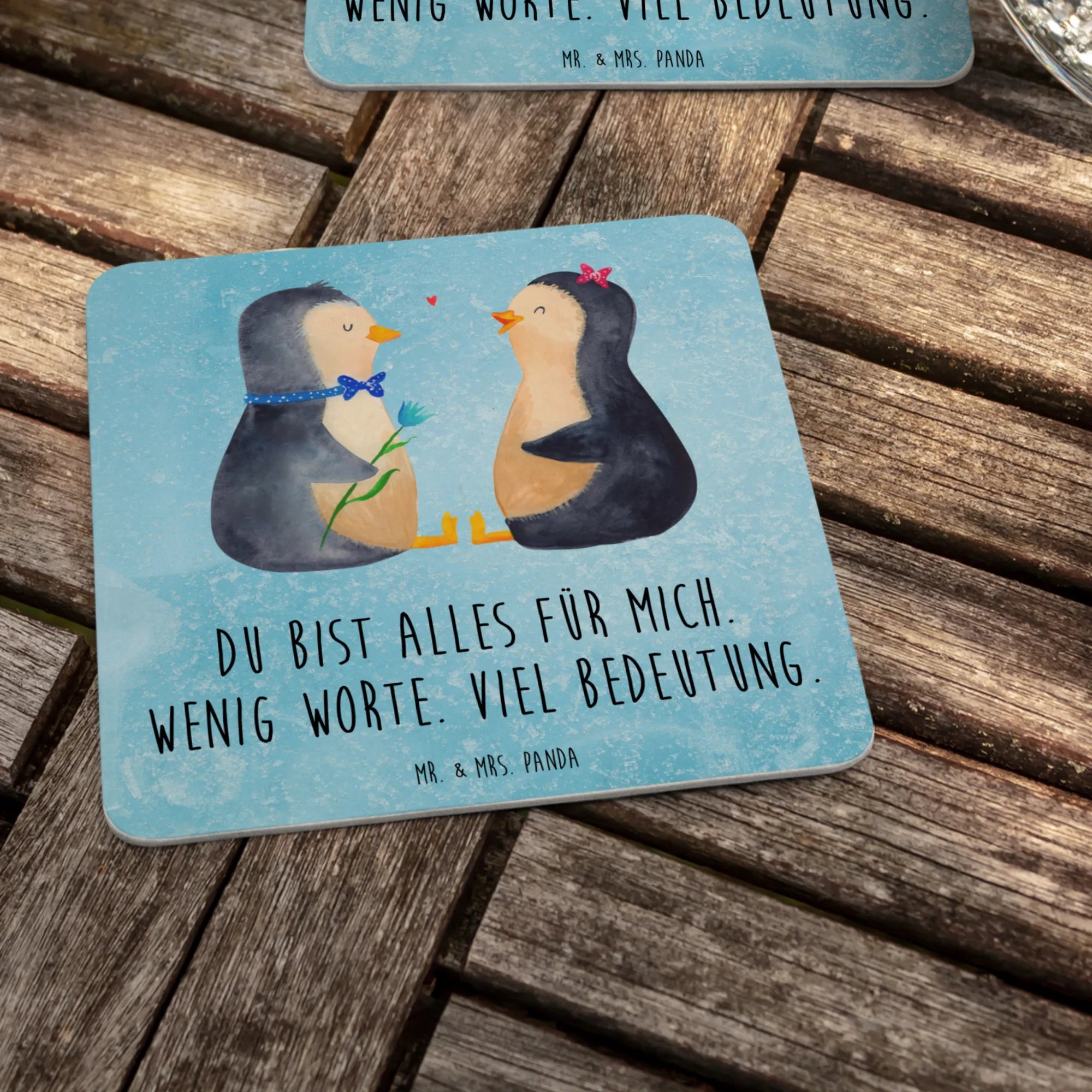 Mit viel Liebe zum Detail designt, durch Aquarellillustrationen von Mrs. & Mr. Panda, sind die Pinguine nicht nur süß, sondern auch ein echter Hingucker. Sie verkörpern Lebensfreude und die besondere Verbindung zwischen Liebenden. Verschenke diesen Bierdeckel an deinen Partner oder deine Partnerin, um zu zeigen, wie viel sie dir bedeuten.