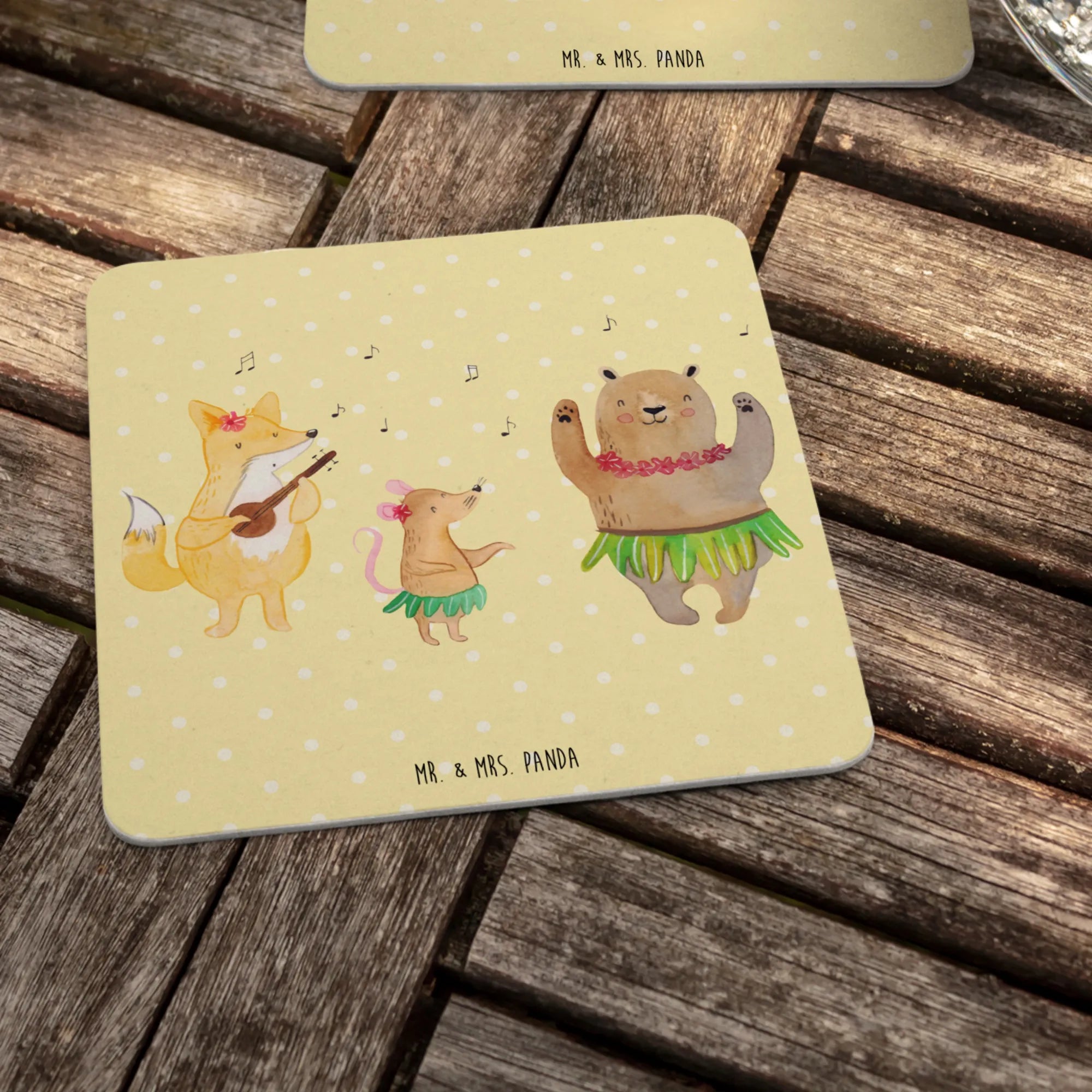 Entdecke den wundervollen Bierdeckel "Waldtiere Aloha" aus der bezaubernden Small World Kollektion von Mr. & Mrs. Panda! Dieser Bierdeckel ist nicht nur ein praktisches Utensil, um deinen Tisch vor unschönen Abdrücken und Kratzern zu schützen, sondern auch ein echtes Highlight an jedem Tisch. Die niedlichen Waldtiere in bunten Hula-Röcken versetzen dich sofort in Urlaubsstimmung und bringen gute Laune mit sich! Gemeinsam tanzen sie zu fröhlicher Hawaiianischer Musik und machen jeden Abend zu etwas Besonderem.
