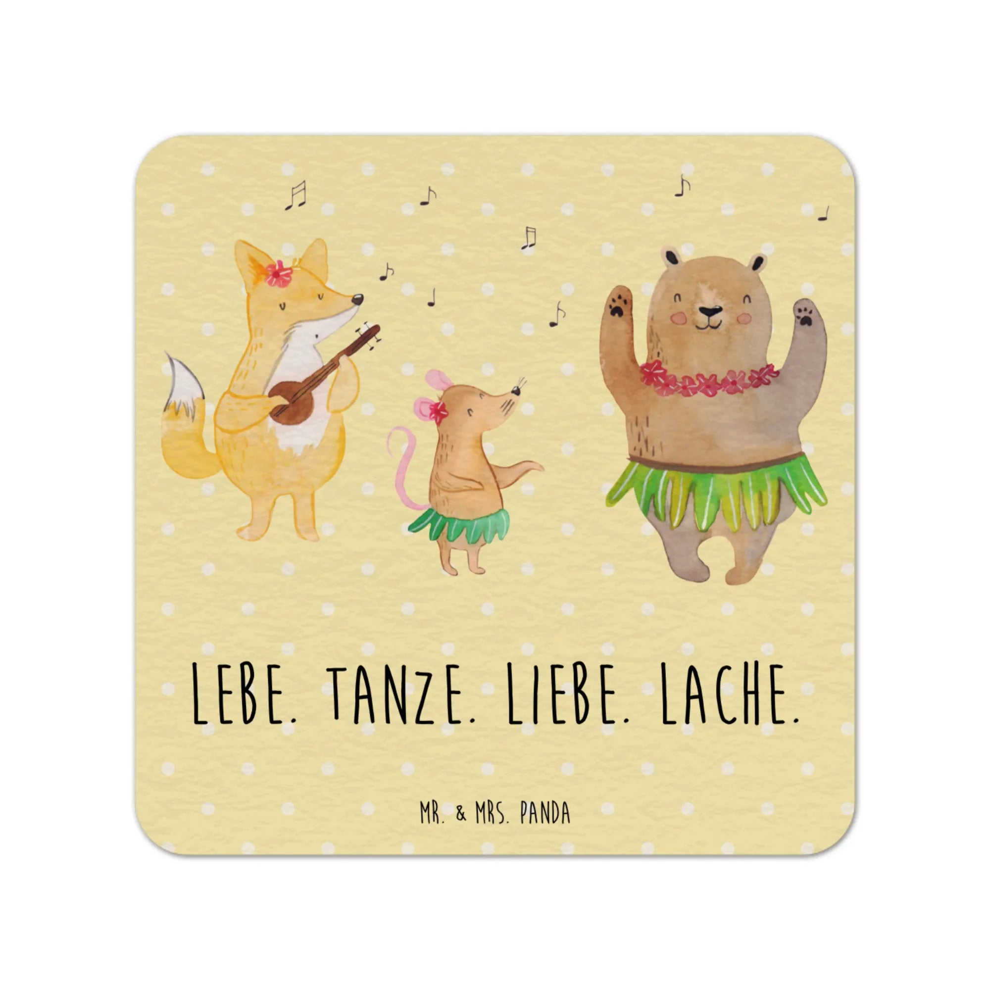 Die zauberhaften Waldtiere im Aloha-Stil, die in bunten Hula-Röcken tanzen, sind nicht nur stylisch, sondern auch funktional. Mit den Maßen von 95 mm x 95 mm und einer Dicke von 14 mm schützen sie deinen Tisch vor unschönen Abdrücken und Kratzern, während sie gleichzeitig für gute Laune sorgen. Der fröhliche Slogan "Lebe. Tanze. Liebe. Lache." motiviert dazu, das Leben in vollen Zügen zu genießen.