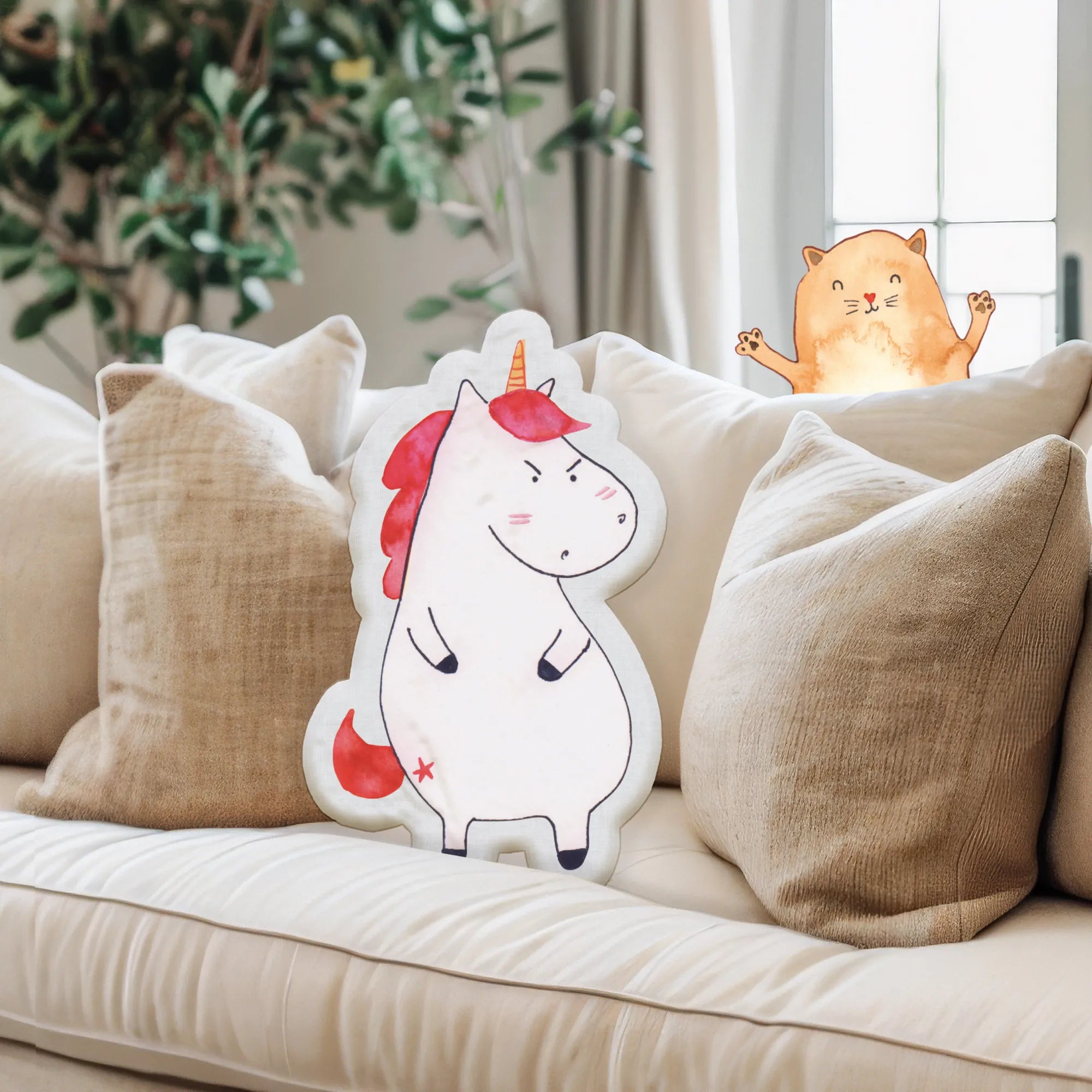 Das Kissen Kuscheltier mit dem wütenden Einhorn-Motiv aus der zauberhaften Einhorn-Kollektion von Mr. & Mrs. Panda ist der perfekte treue Begleiter für alle, die ein bisschen Humor in ihren Alltag bringen möchten. Wenn du schon oft mit dumme Fragen im Büro konfrontiert wurdest oder einfach mal keine Lust auf die täglichen Herausforderungen hast, dann ist dieses Kissen genau das Richtige für dich! Das niedliche, wütende Einhorn sagt auf charmante Weise "Nein!" zu all den nervigen Dingen, die wir manchmal einfach nicht wollen und wird so zum idealen Ausdruck deiner Stimmung.