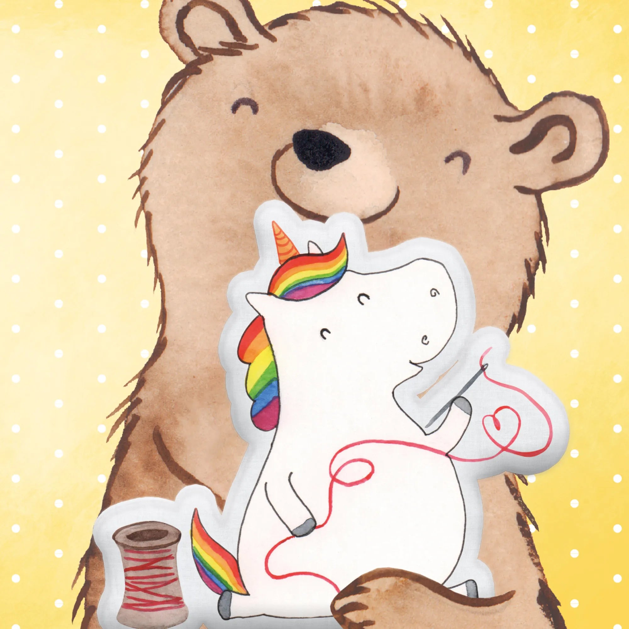 Das Kissen Kuscheltier Einhorn Näherin von Mr. & Mrs. Panda ist der perfekte Begleiter für alle, die die zauberhafte Welt der Einhörner lieben und ein Faible fürs Nähen haben. Dieses wunderbare, soft-flauschige Kissen vereint kuschelige Gemütlichkeit mit einem einzigartigen Design und ist ein echtes Unikat, da jedes Kissen individuell genäht wird. Handgezeichnet mit viel Liebe, zeigt das Kissen ein süßes Einhorn, das eifrig mit Nadel und Faden arbeitet und wunderschöne Dinge kreiert.