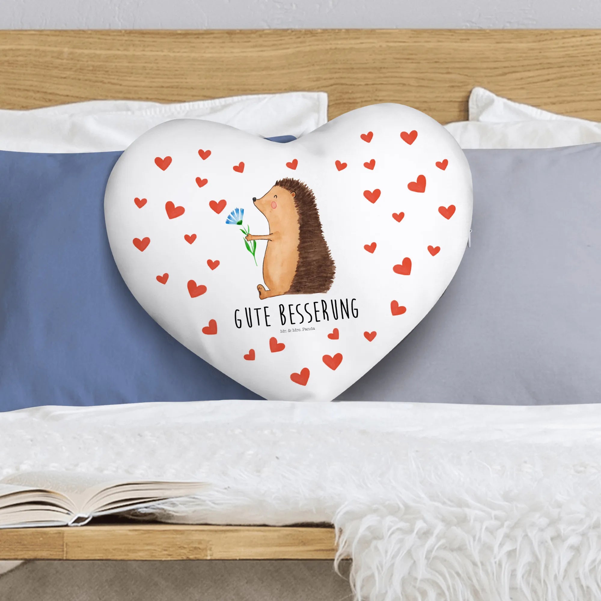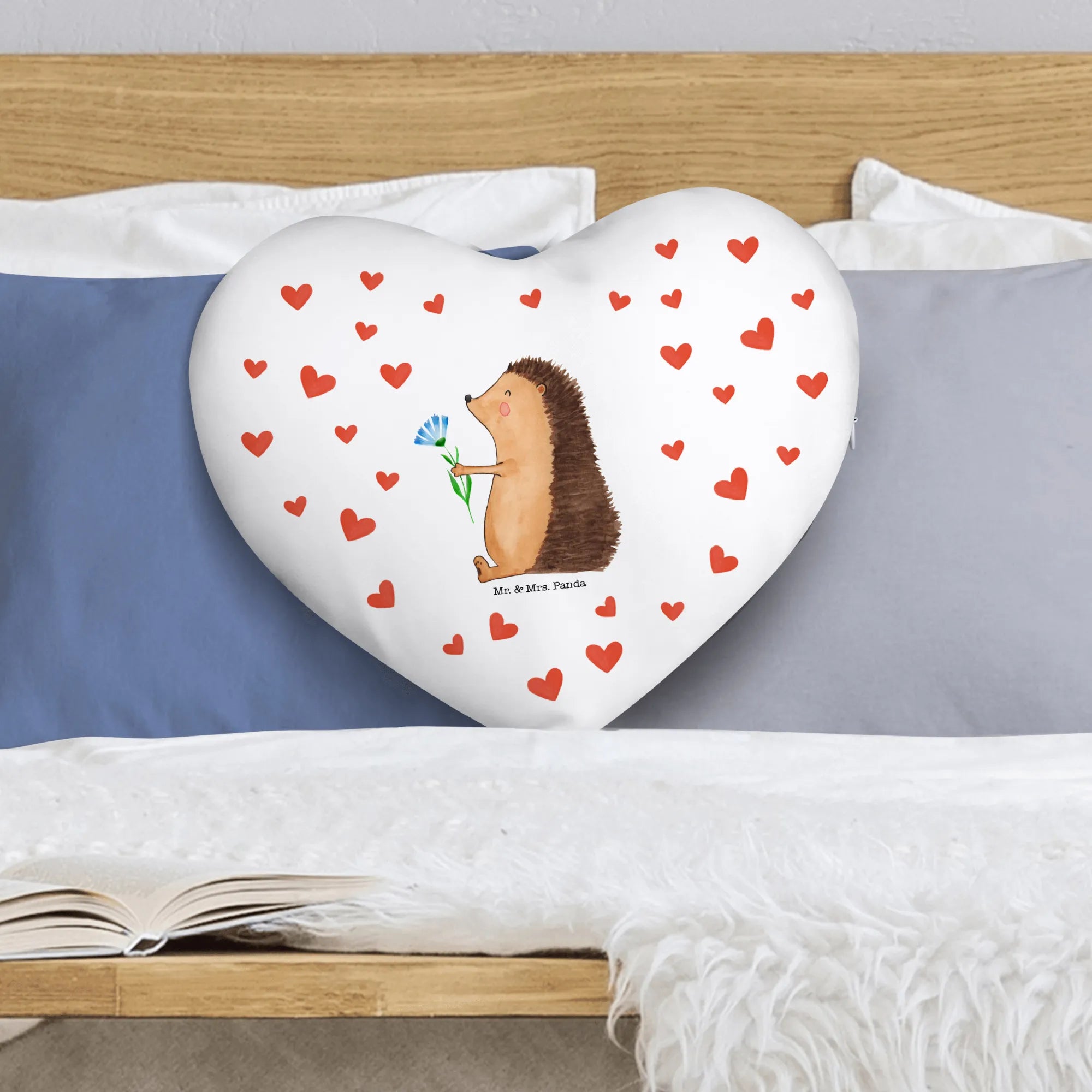 Poduszka w kształcie serca jeż Kwiaty - z napisem