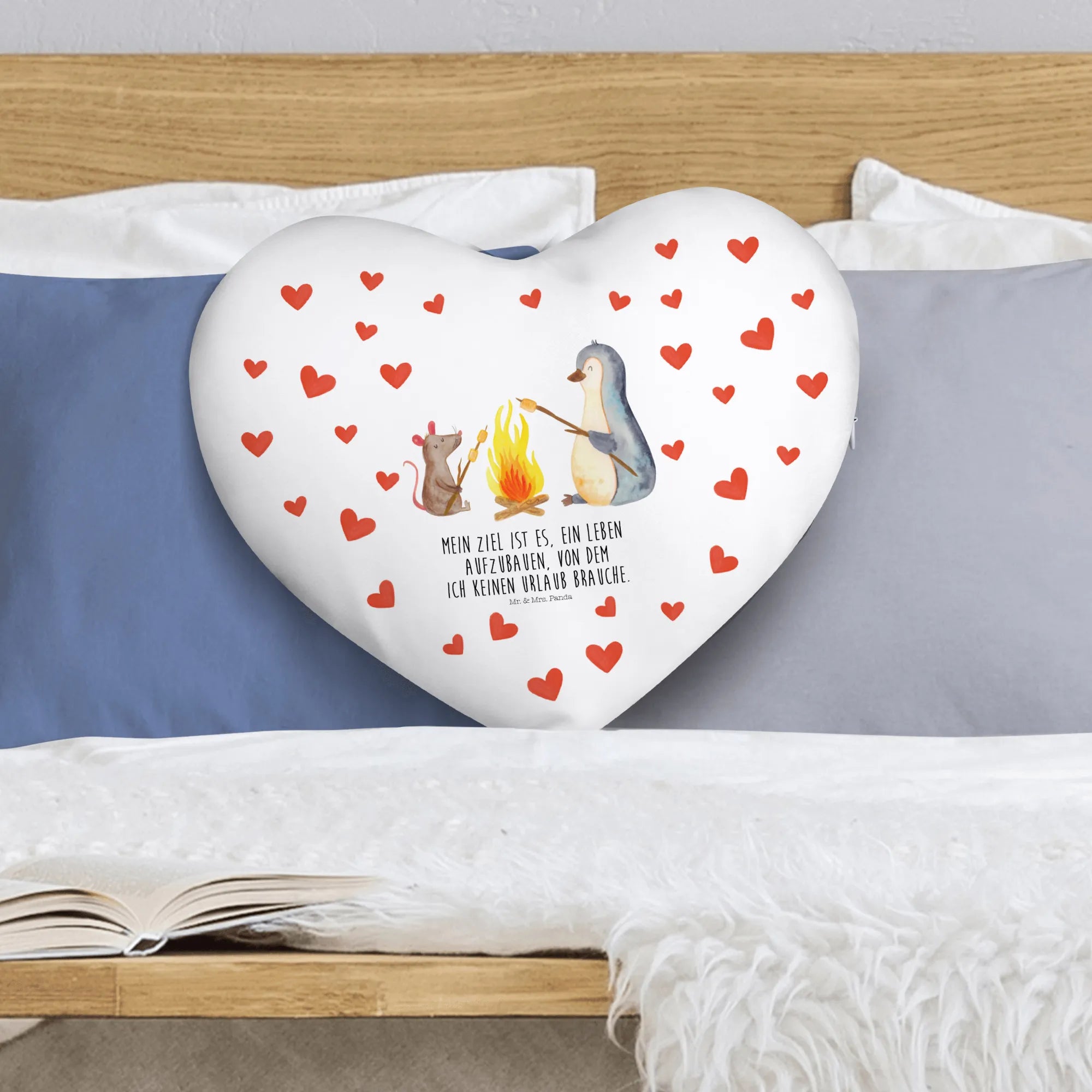 Poduszka w kształcie serca pingwin ognisko - z napisem
