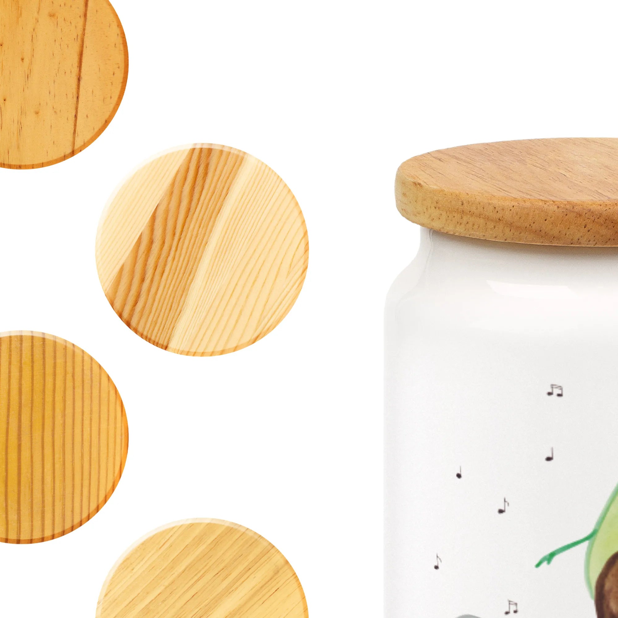 Unsere Vorratsdose bringt mit ihrem süßen Avocado-Motiv sofort ein Lächeln in deine Küche. Die tanzende Avocado vor einem Ghettoblaster und der liebevolle Spruch „Mit Musik ist die Welt schöner, die Gedanken leiser, und die Drinks schmecken besser.“ machen diese Aufbewahrungsdose zu einem einzigartigen Blickfang. 🎶🥑