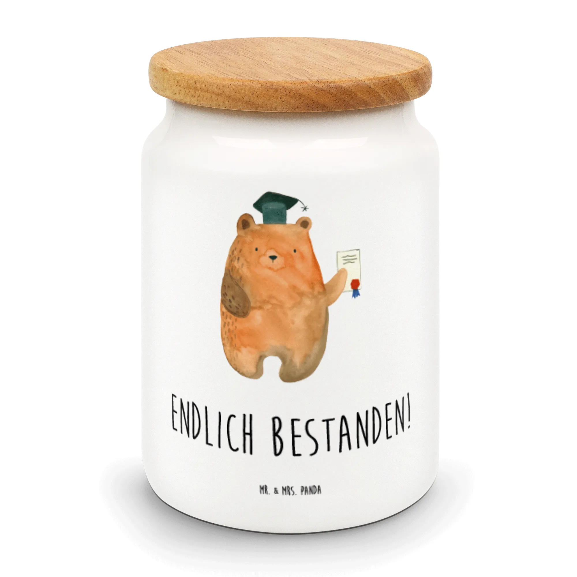 Die liebevoll bedruckte Vorratsdose mit dem süßen Prüfungsbär von Mr. & Mrs. Panda ist das perfekte Geschenk für alle, die eine Prüfung erfolgreich bestanden haben. Dieser besondere Vorratsbehälter kombiniert stilvolles Design mit Funktionalität und ist ideal für die Aufbewahrung von Keksen, Mehl oder anderen Leckereien. Mit dem liebevollen Slogan "Endlich bestanden!" erinnert dich dieser bärige Begleiter daran, dass du alles erreichen kannst, wenn du nur daran glaubst.