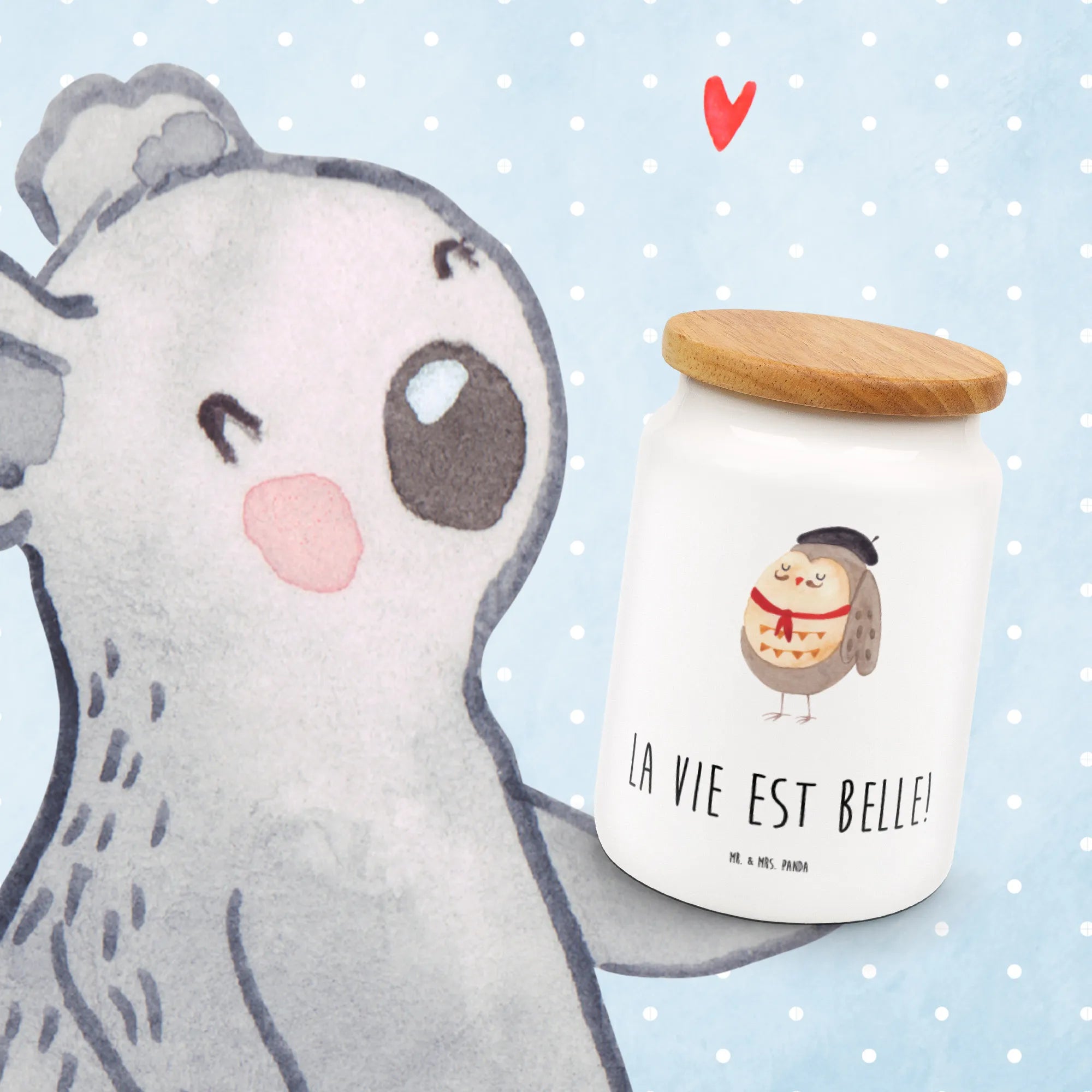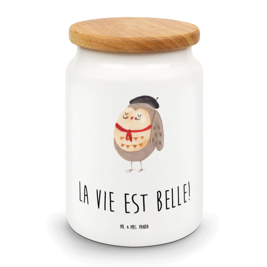 Ob als Geschenk für Eulenliebhaber, als stylisches Deko-Element oder als praktische Aufbewahrungslösung – diese Vorratsdose ist perfekt für jeden Anlass. Verschenke Freude und ein Lächeln mit der Eule Französisch von Mr. & Mrs. Panda! Egal ob zum Geburtstag, zur Einweihung oder einfach so – du machst sicher jemanden glücklich mit dieser einzigartigen Keksdose.