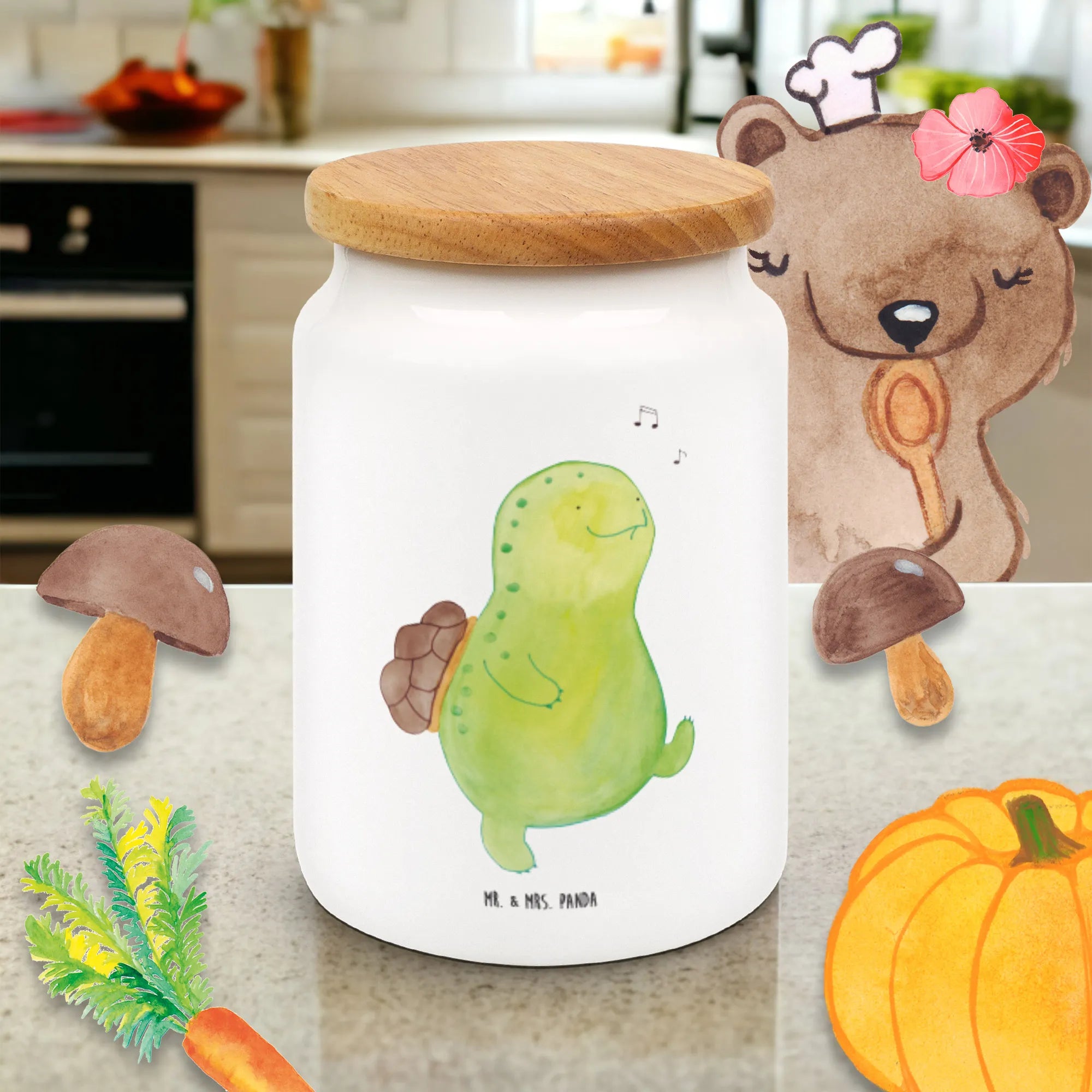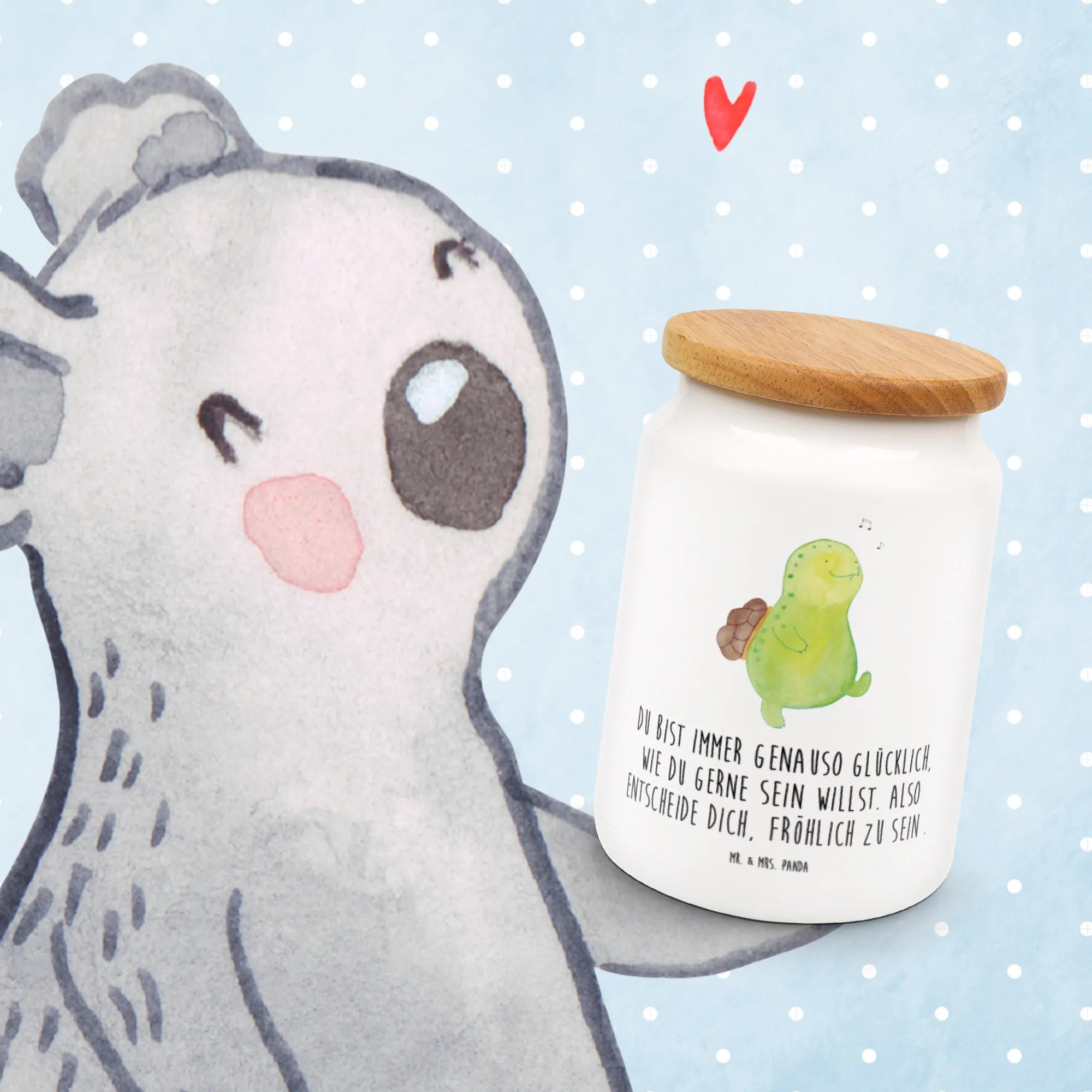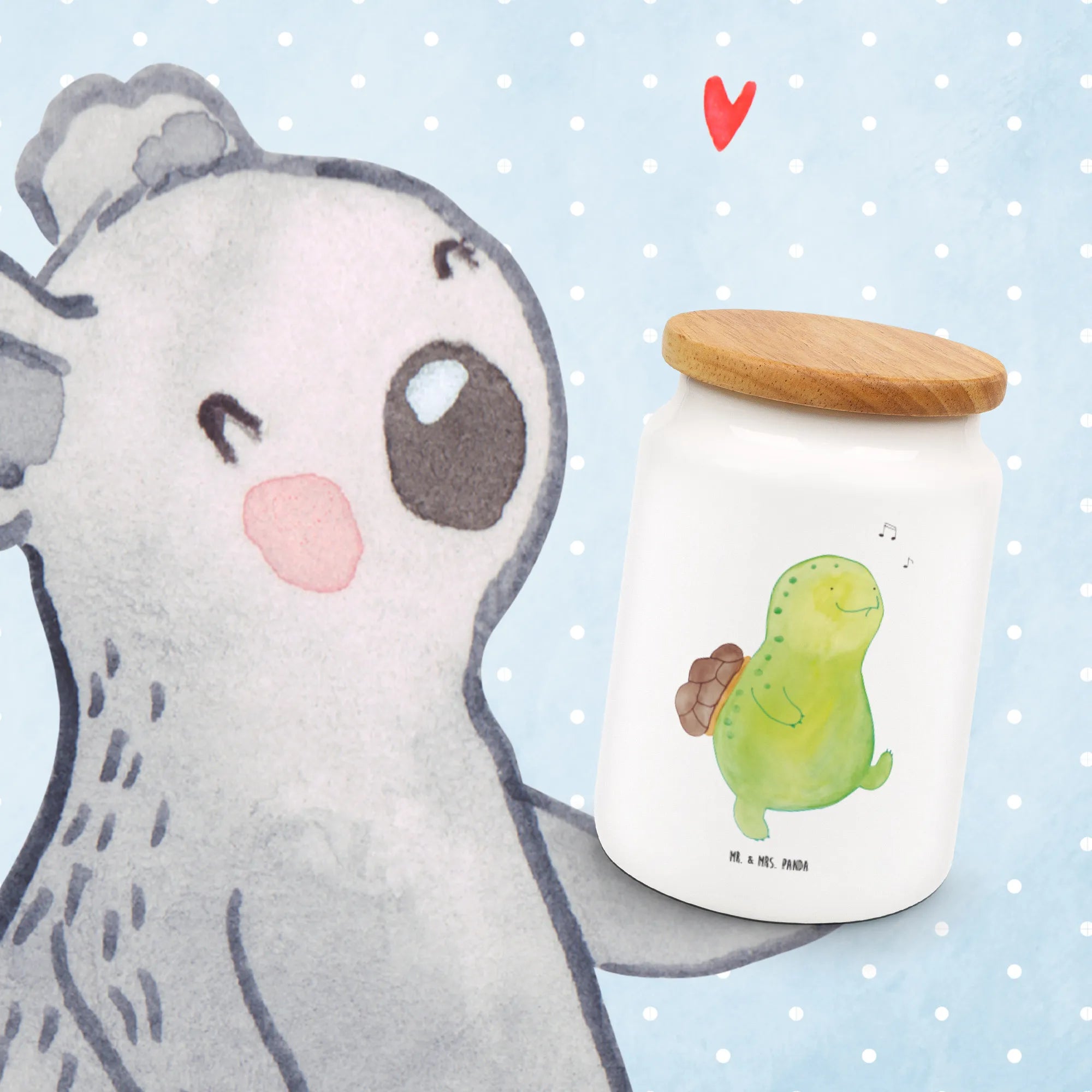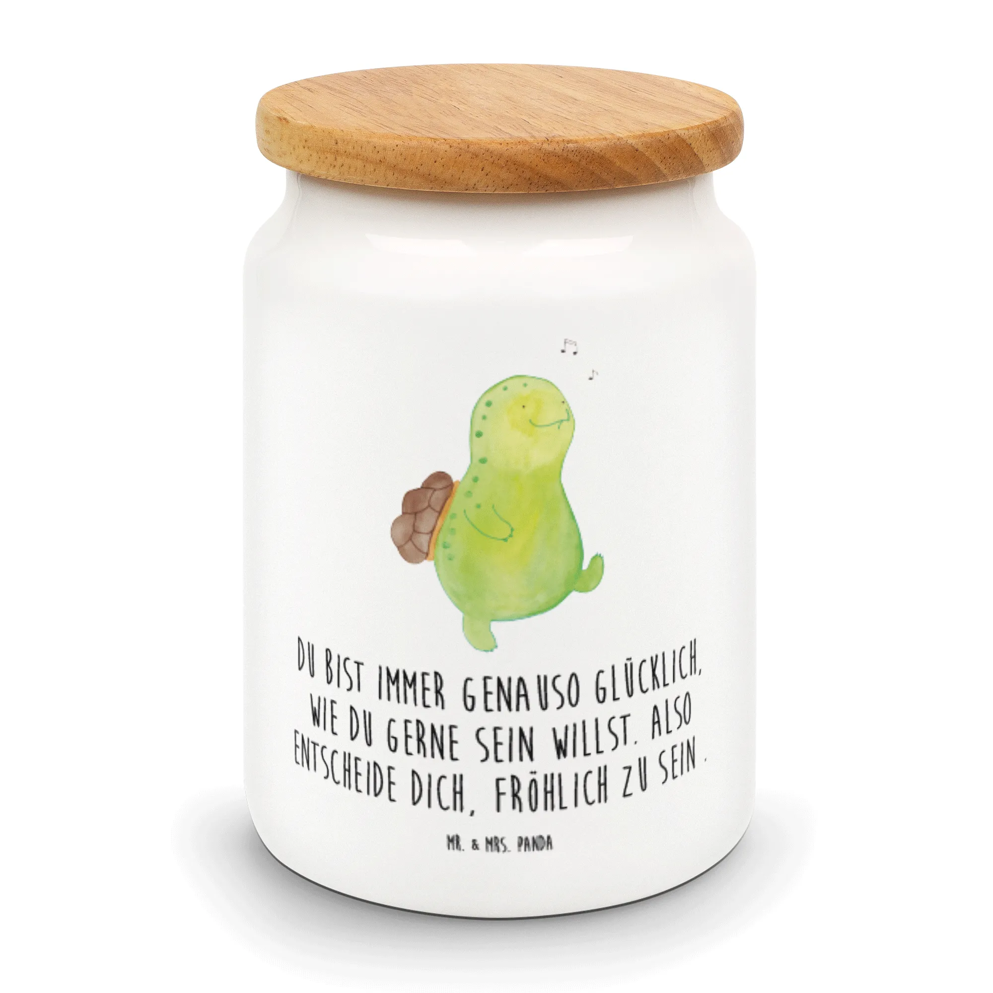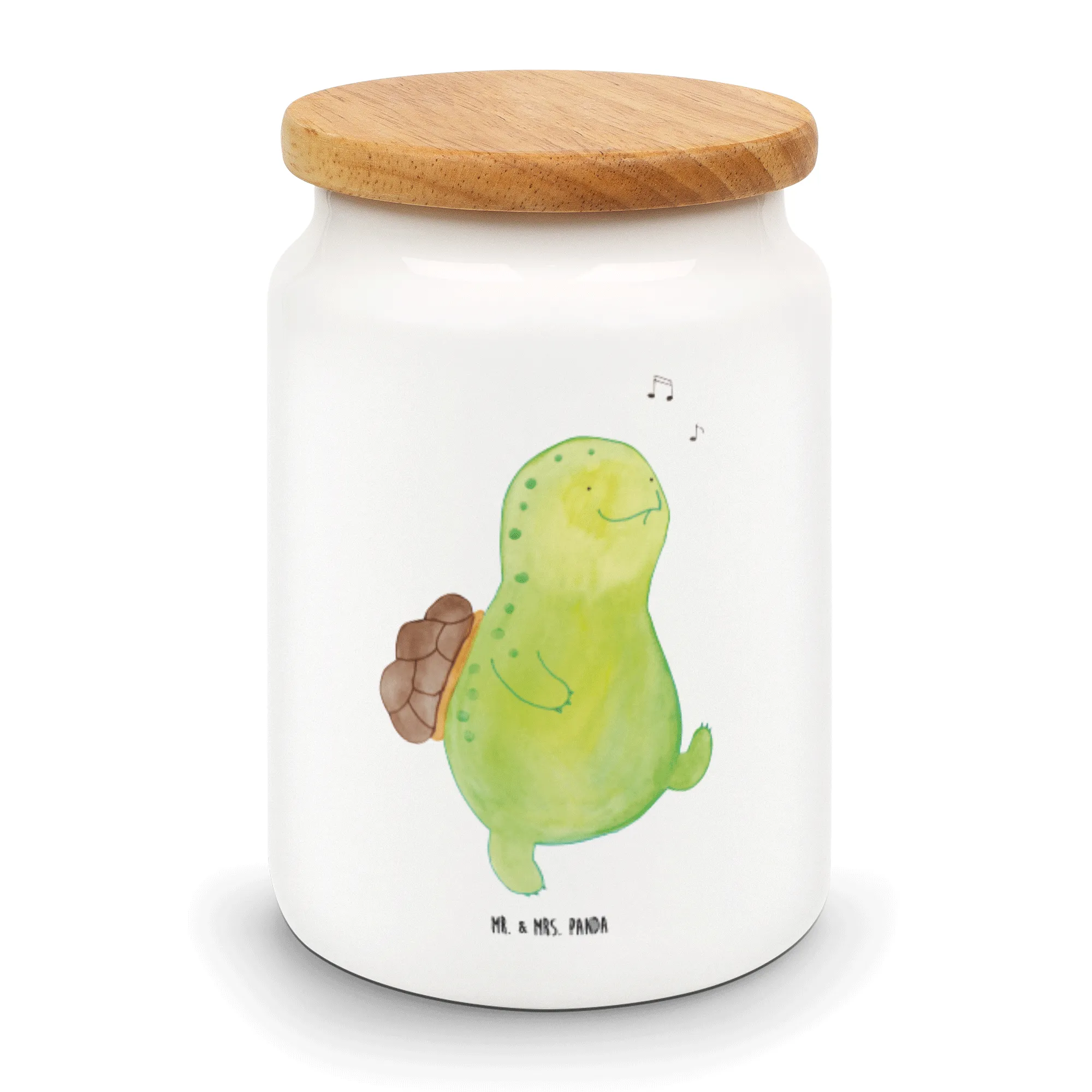 Entdecke die zauberhafte Vorratsdose mit dem fröhlichen Motiv der pfeifenden Schildkröte von Mr. & Mrs. Panda! Diese liebevoll bedruckte Keramikdose ist nicht nur ein praktischer Helfer in deiner Küche, sondern bringt auch Lebensfreude und gute Laune in dein Zuhause.