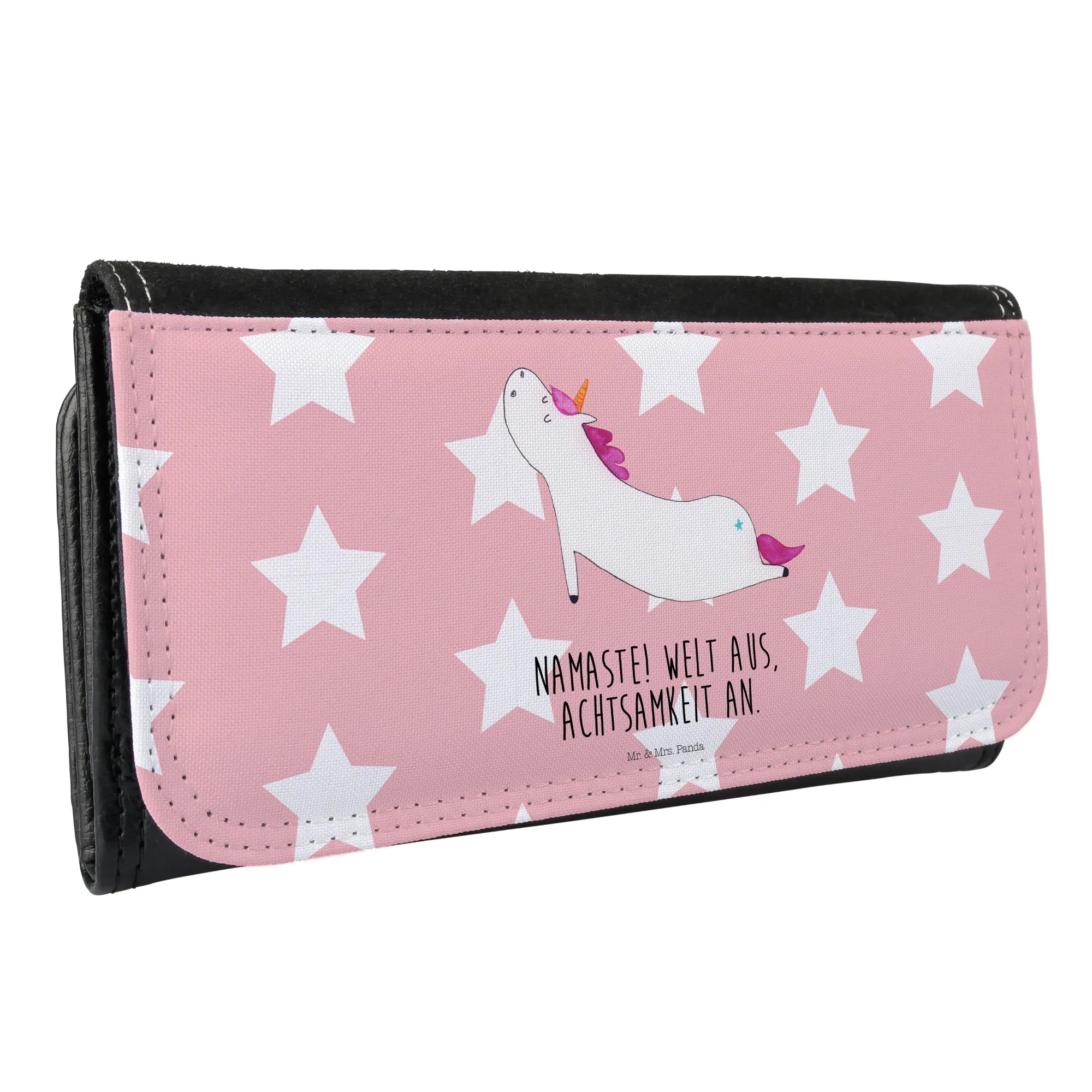 Portfel damski jednorożec joga - z napisem - Pastelowy czerwony