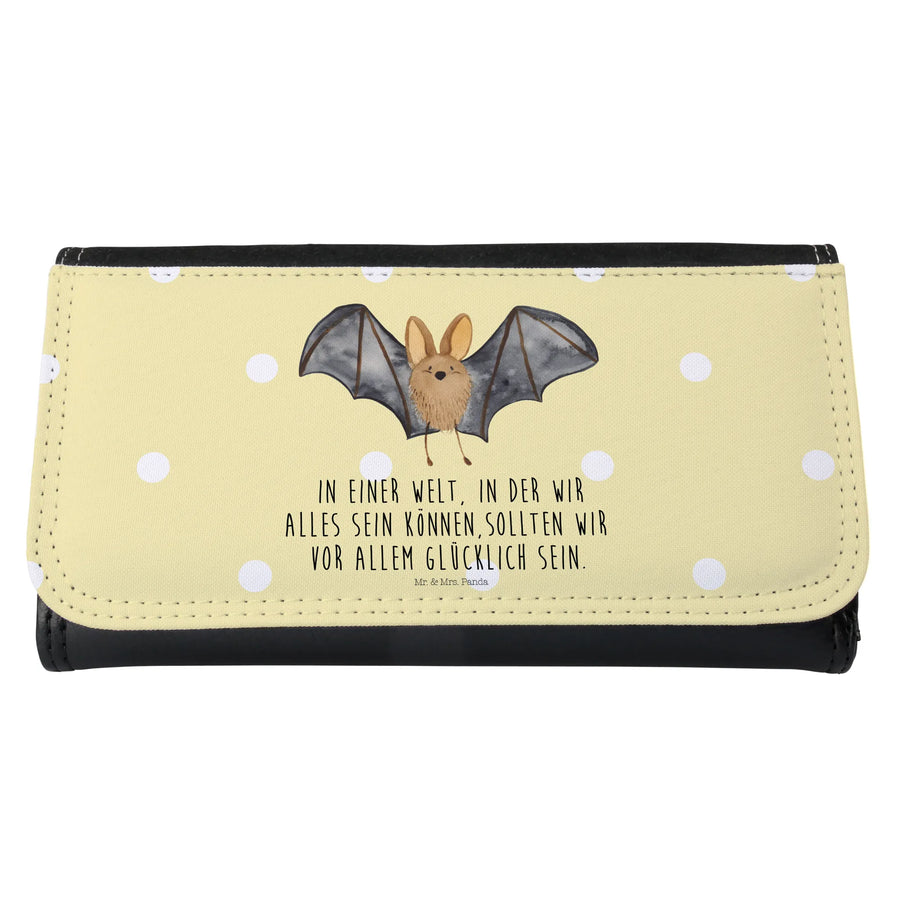 Portfel damski nietoperz skrzydło - z napisem - Pastelowy żółty
