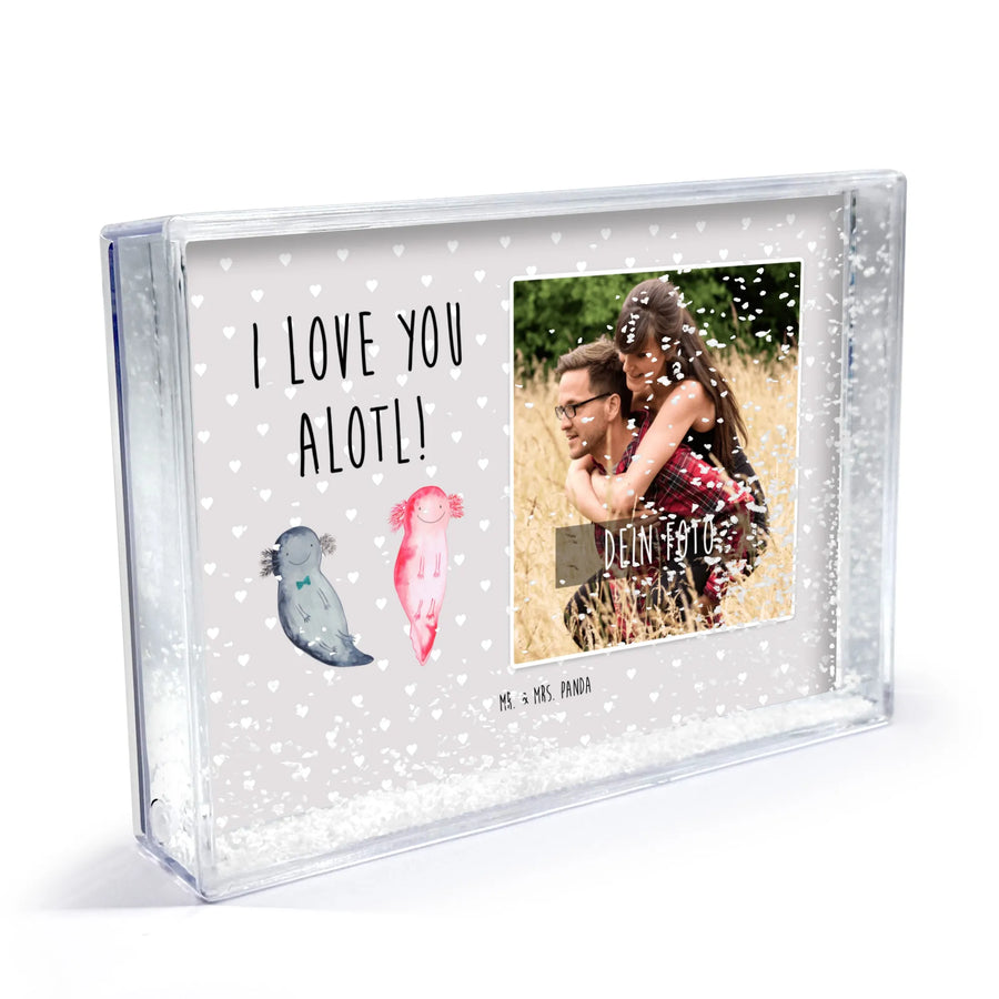 Der Schüttelrahmen mit Foto im bezaubernden Axolotl Liebe Design von Mr. & Mrs. Panda ist das perfekte Geschenk für Verliebte! Mit seinem einzigartigen Motiven, das zwei süße Axolotl zeigt, die sich verliebt anblicken, bringt dieser Bilderrahmen nicht nur eine tolle Stimmung ins Heim, sondern auch eine emotionale Verbindung zum Schwingen.