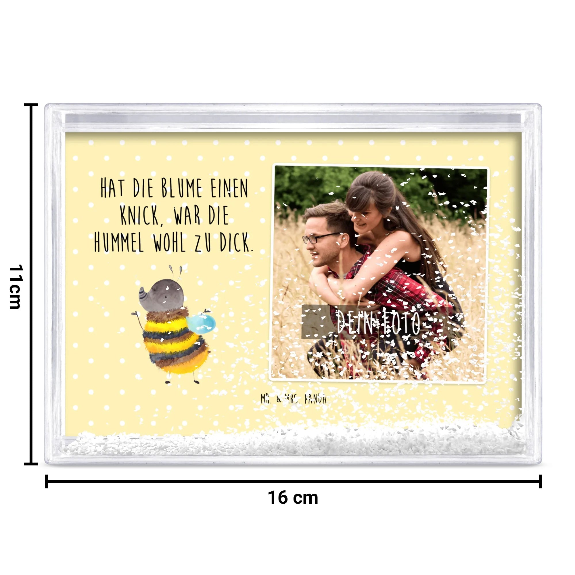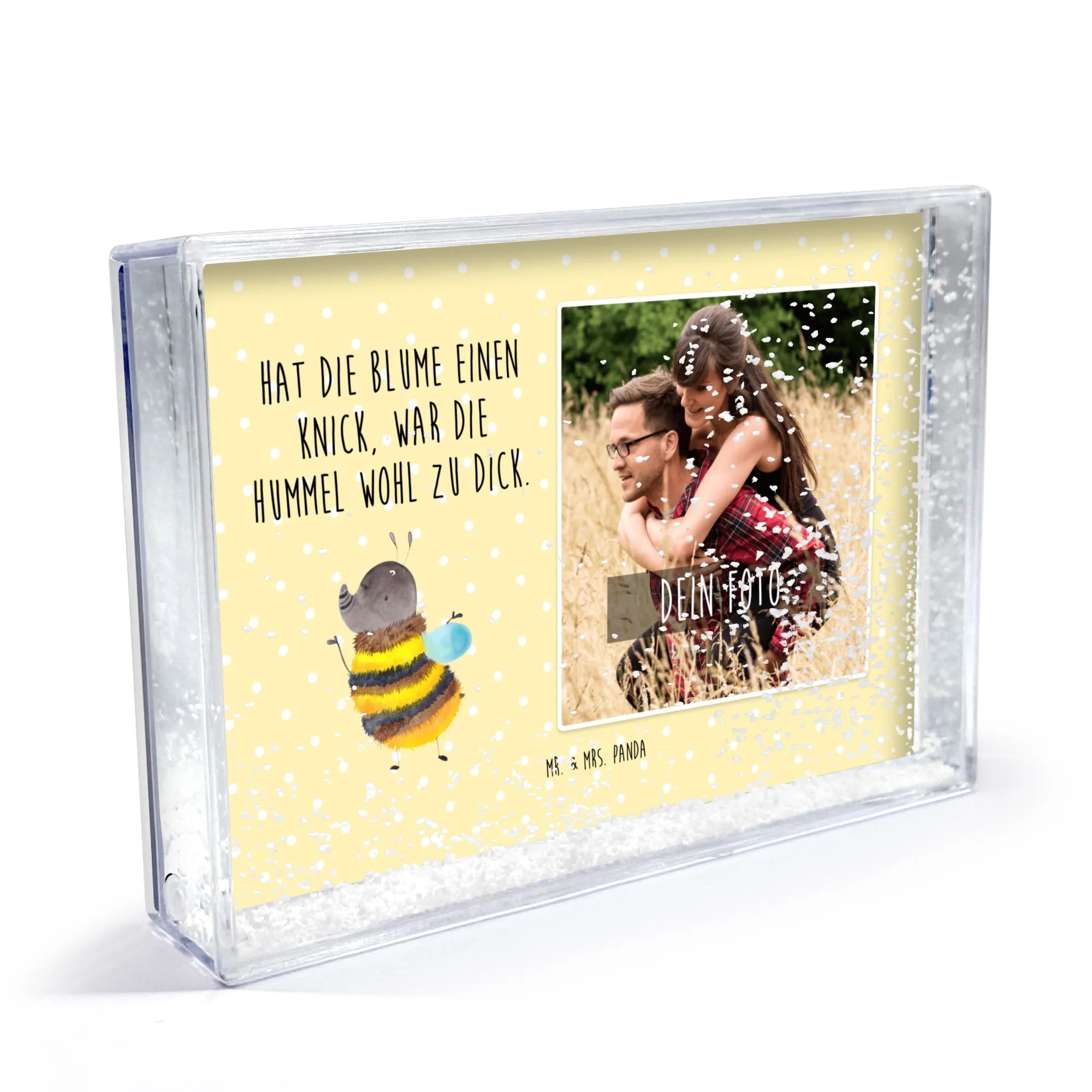 Ob du ihn dir selbst gönnst oder als tolles Fotogeschenk an jemanden besonderen weitergibst, dieser Schüttelrahmen ist die perfekte Wahl, um kreative Erinnerungen festzuhalten. Besonders Tierliebhaber und Naturliebhaber werden das charmante Design der Hummel zu schätzen wissen. Mach dir oder jemandem einen großen Gefallen und bringe durch diesen Schüttelrahmen mit Foto etwas mehr Freude und Farbe in den Alltag! Der Schüttelrahmen mit Foto Hummel flauschig ist eine wunderbare Möglichkeit, persönliche Momente mit einem Lächeln zu vereinen – und das macht ihn zu einem der besten Geschenke, die du dir vorstellen kannst!