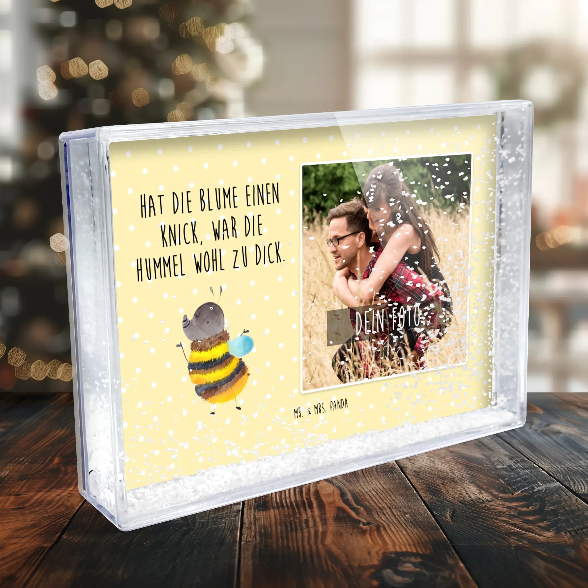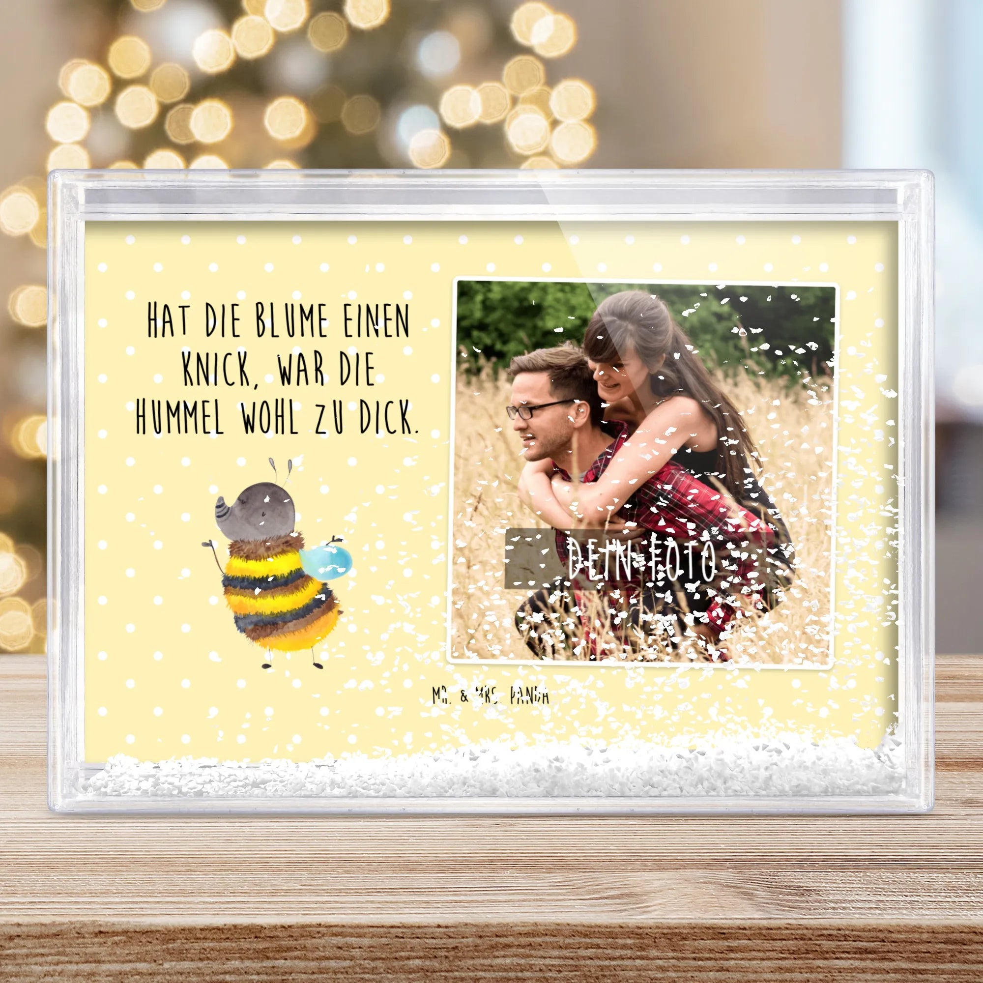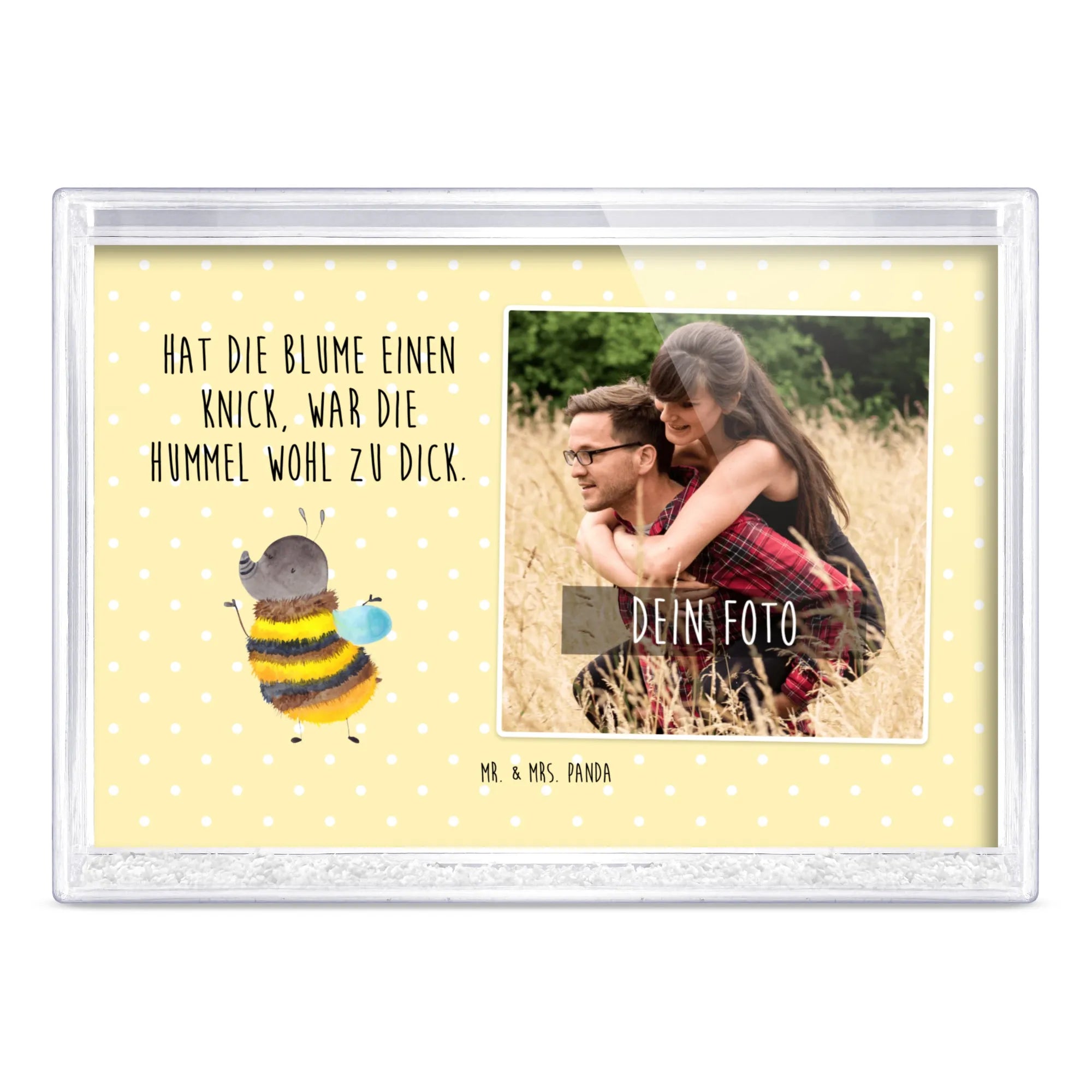 Der Schüttelrahmen mit Foto Hummel flauschig ist das perfekte Geschenk für alle, die Freude und gute Laune in ihrem Zuhause verbreiten möchten! Mit seinem niedlichen Design der flauschigen Hummel aus der Small World Kollektion zaubert er jedem ein Lächeln ins Gesicht. Die Hummel schimmert in einem lebendigen Gelb und Schwarz und bringt die Wärme der Natur direkt zu dir nach Hause. Dieser Bilderrahmen ist nicht nur ein echter Hingucker, sondern auch äußerst vielseitig, denn du kannst ihn ganz einfach mit deinem eigenen Foto personalisieren. So wird aus jedem Schüttelrahmen ein einzigartiges Fotogeschenk, das Erinnerungen lebendig werden lässt.