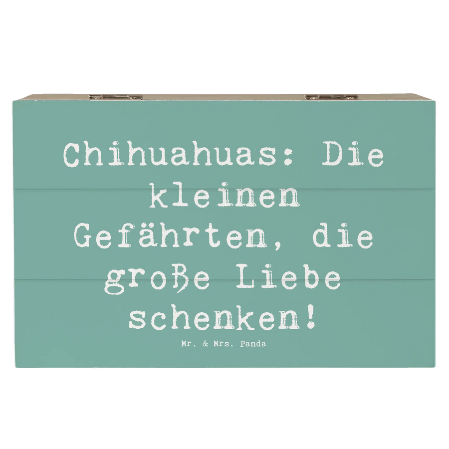 Die wunderschöne Holzkiste von Mr. & Mrs. Panda ist nicht nur ein echter Hingucker, sondern auch perfekt für alle Hundeliebhaber, besonders für Chihuahua-Fans! Diese ansprechende Kiste mit dem Motiv "Chihuahuas: Die kleinen Gefährten, die große Liebe schenken!" ist ein ideales Geschenk für jeden Anlass.
