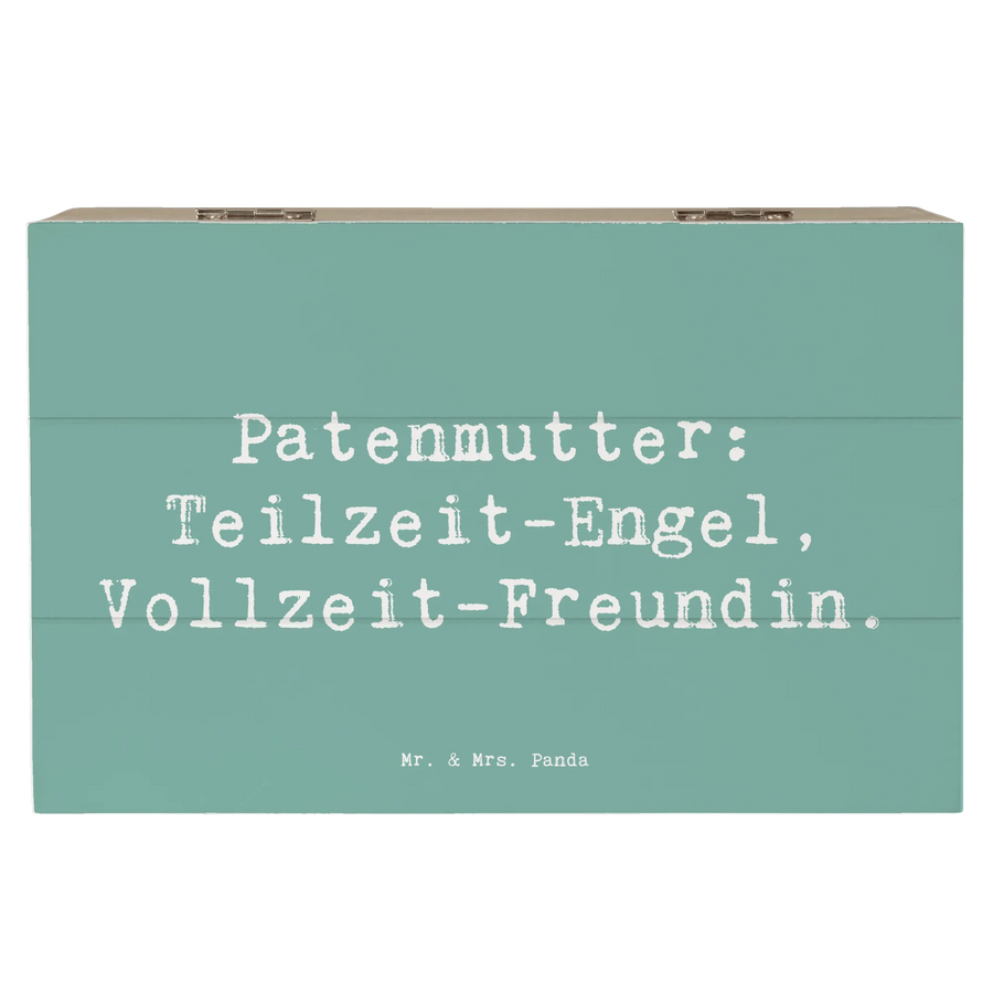 Die wunderschöne Holzkiste mit dem liebevollen Motiv "Patenmutter: Teilzeit-Engel, Vollzeit-Freundin" von Mr. & Mrs. Panda ist ein ganz besonderes Geschenk für jede Patenmutter. Diese einzigartige Kiste ist nicht nur ein praktischer Aufbewahrungsort für Schätze aus der Kindheit oder bedeutende Erinnerungen, sondern auch ein echter Blickfang in jedem Zuhause.