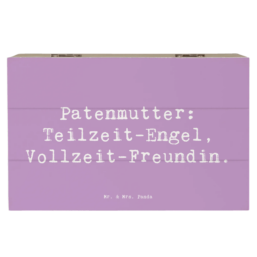Die wunderschöne Holzkiste mit dem liebevollen Motiv "Patenmutter: Teilzeit-Engel, Vollzeit-Freundin" von Mr. & Mrs. Panda ist ein ganz besonderes Geschenk für jede Patenmutter. Diese einzigartige Kiste ist nicht nur ein praktischer Aufbewahrungsort für Schätze aus der Kindheit oder bedeutende Erinnerungen, sondern auch ein echter Blickfang in jedem Zuhause.