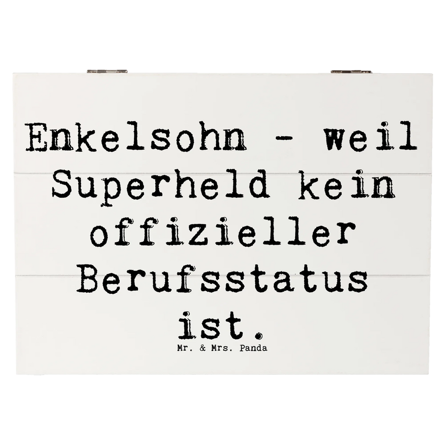 Entdecke die bezaubernde Holzkiste "Enkelsohn - weil Superheld kein offizieller Berufsstatus ist" von Mr. & Mrs. Panda! Diese wunderschöne Kiste ist das perfekte Geschenk für Großeltern, die ihren Enkelsohn von ganzem Herzen lieben.