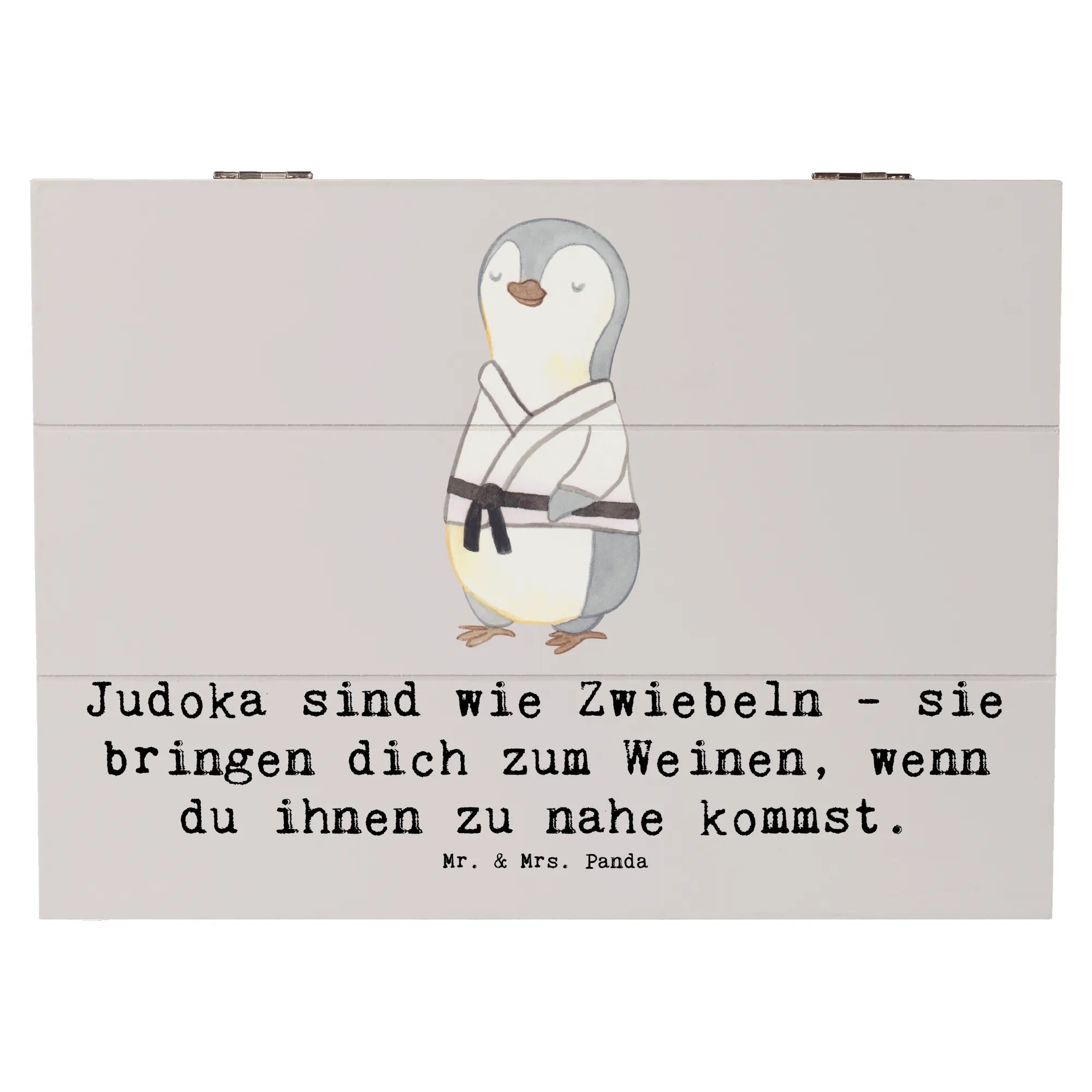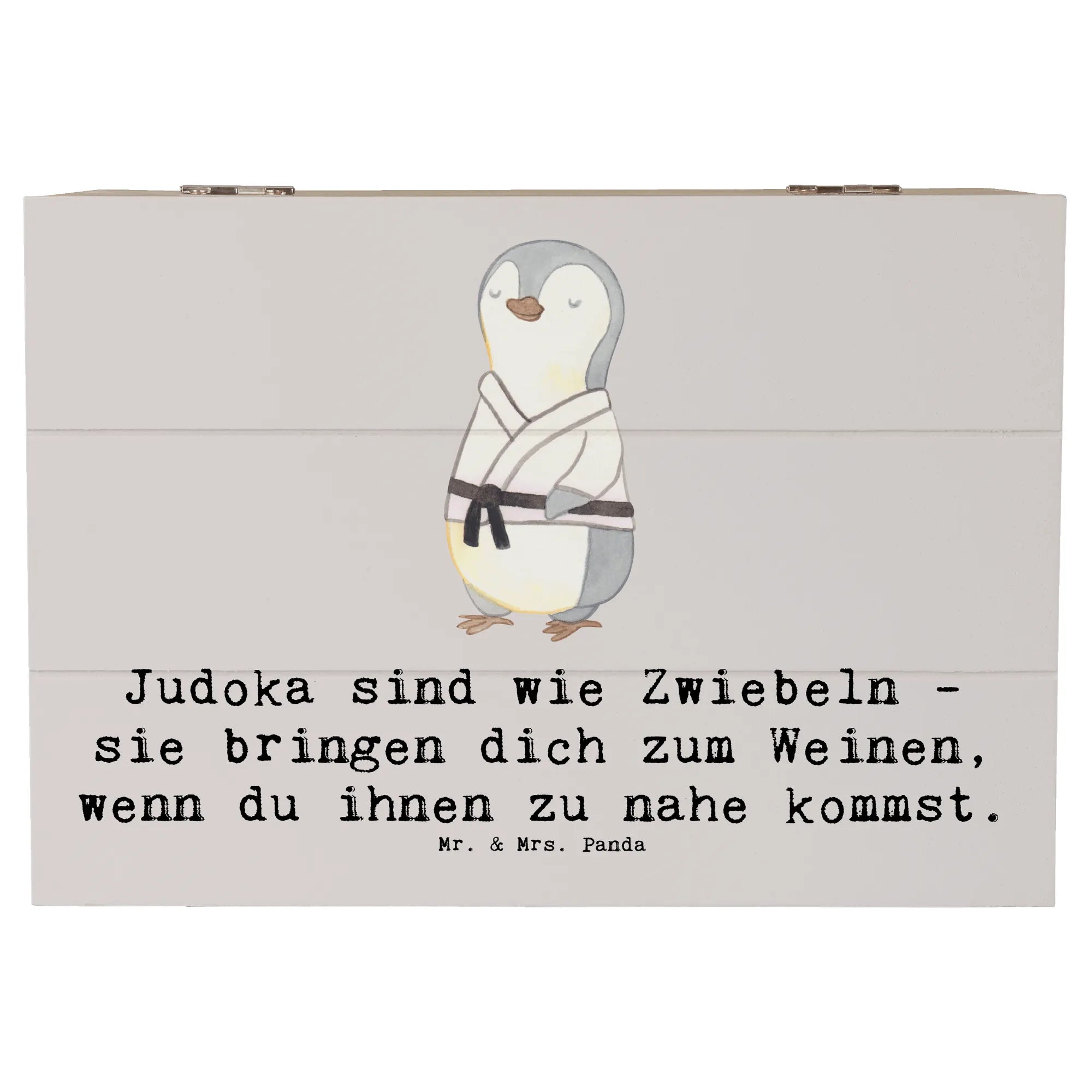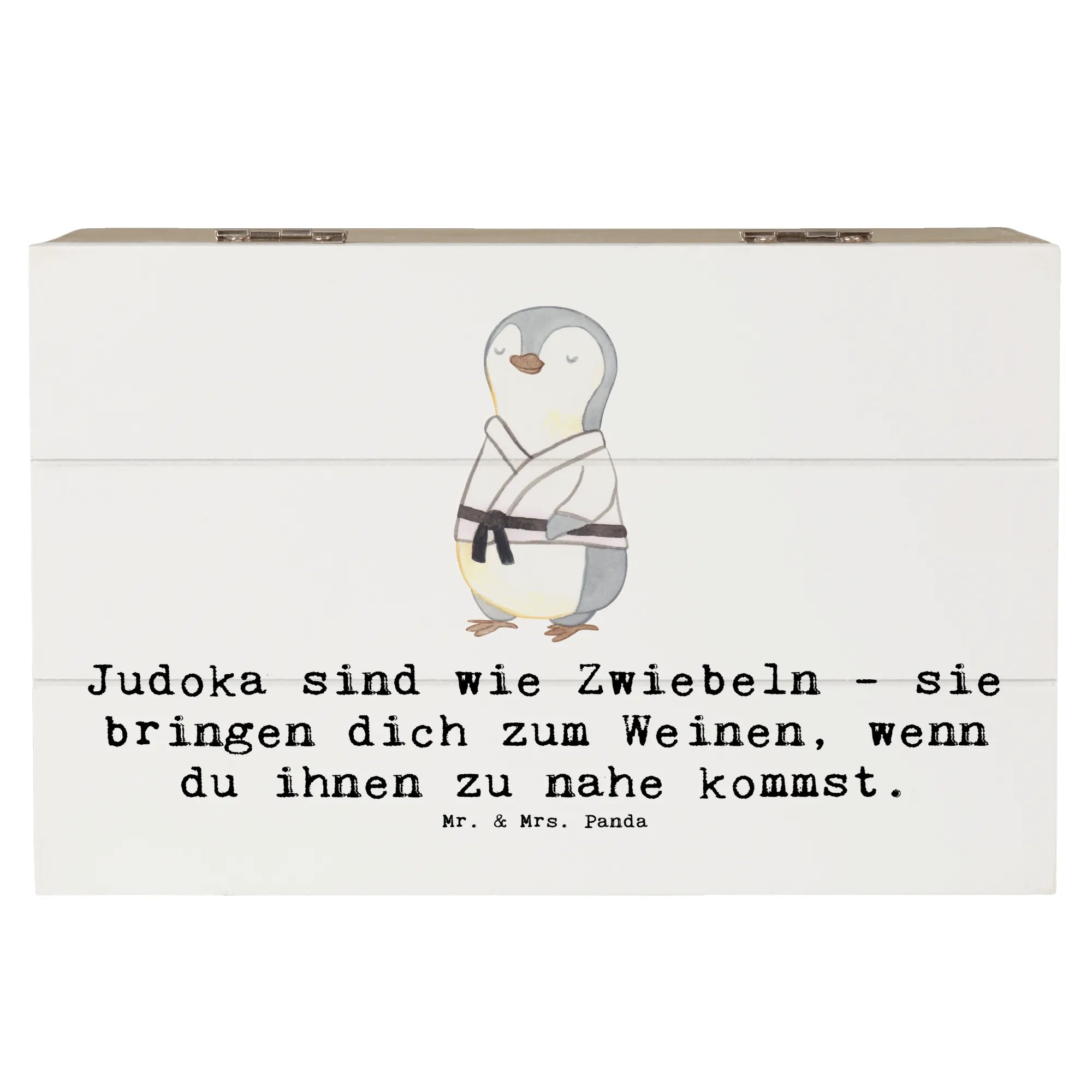 Die wunderschöne Holzkiste von Mr. & Mrs. Panda ist das perfekte Geschenk für jeden Judo-Liebhaber. Egal ob zur Kommunion, Konfirmation, oder einfach als besondere Aufmerksamkeit – diese Erinnerungskiste ist ein wahrer Schatz. Mit den liebevoll gestalteten Motiven und dem witzigen Spruch „Judoka sind wie Zwiebeln - sie bringen dich zum Weinen, wenn du ihnen zu nahe kommst“ zauberst du jedem ein Lächeln ins Gesicht. Die Kiste ist nicht nur ein toller Aufbewahrungsort für die Erinnerungen an Trainings, Wettkämpfe oder besondere Augenblicke im Judo, sondern auch ein wunderschönes Dekoelement für jedes Zuhause.