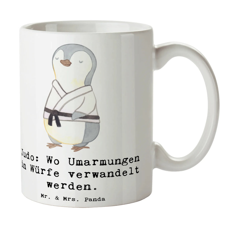 Mr. & Mrs. Panda Tasse „Judo“ – die perfekte Geschenkidee für Judoka und Sportfans! Mit dem witzigen Spruch „Judo: Wo Umarmungen in Würfe verwandelt werden.“ bringt diese Kaffeetasse Dir ein Lächeln nach dem Training oder beim gemütlichen Vereinskaffee. 🥋☕