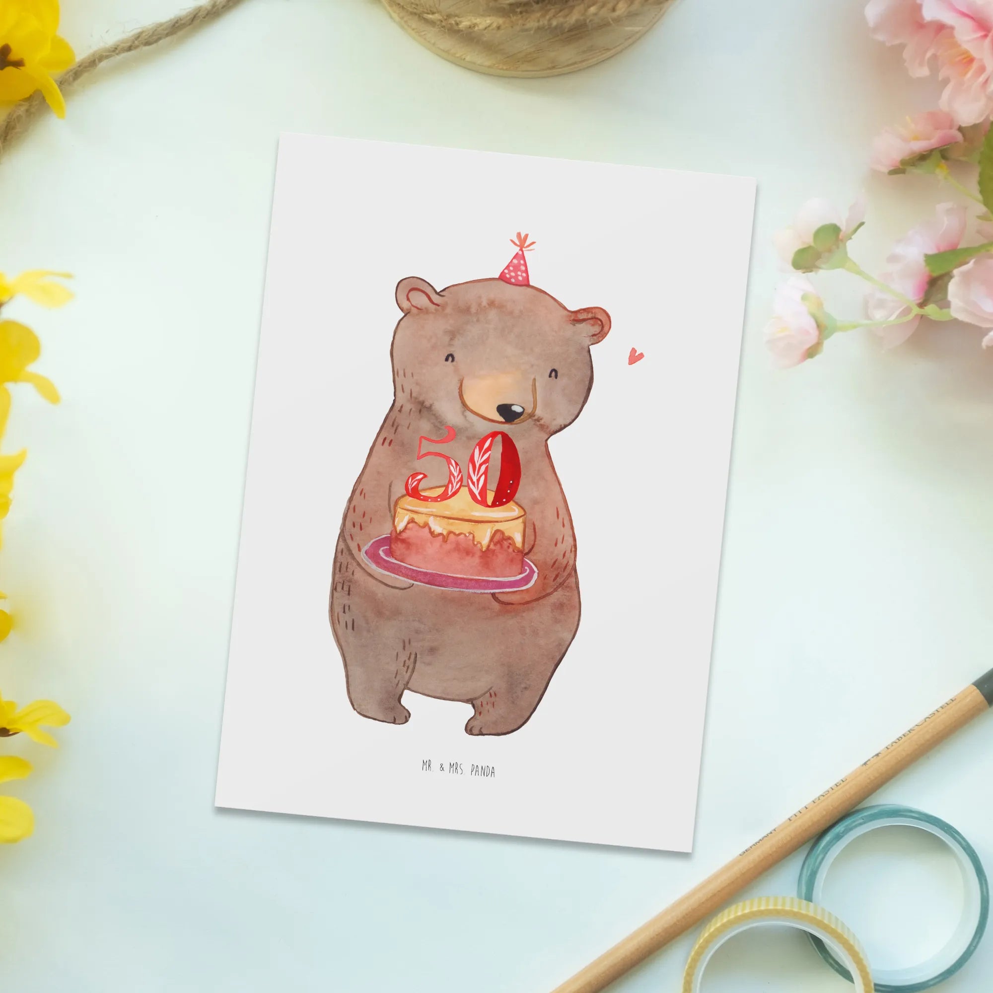 Pocztówka Miś Tort 50. urodziny - z napisem
