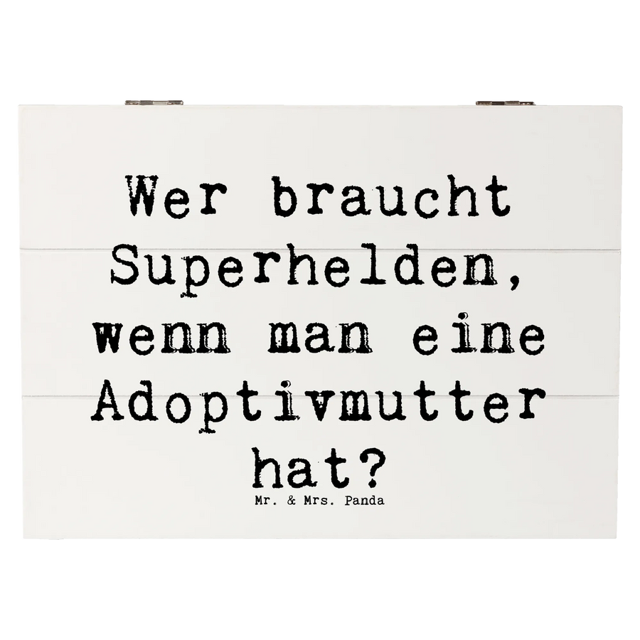 Entdecke die zauberhafte Holzkiste von Mr. & Mrs. Panda! Diese wunderschöne Erinnerungskiste ist das perfekte Geschenk für alle Adoptivmütter, die Liebe und Fürsorge für ihre Kinder zeigen. Mit einem stilvollen Motiv, auf dem steht: 'Wer braucht Superhelden, wenn man eine Adoptivmutter hat?', wird diese Holzbox schnell zum unverzichtbaren Aufbewahrungsort für all die kostbaren Schätze aus der Kindheit.