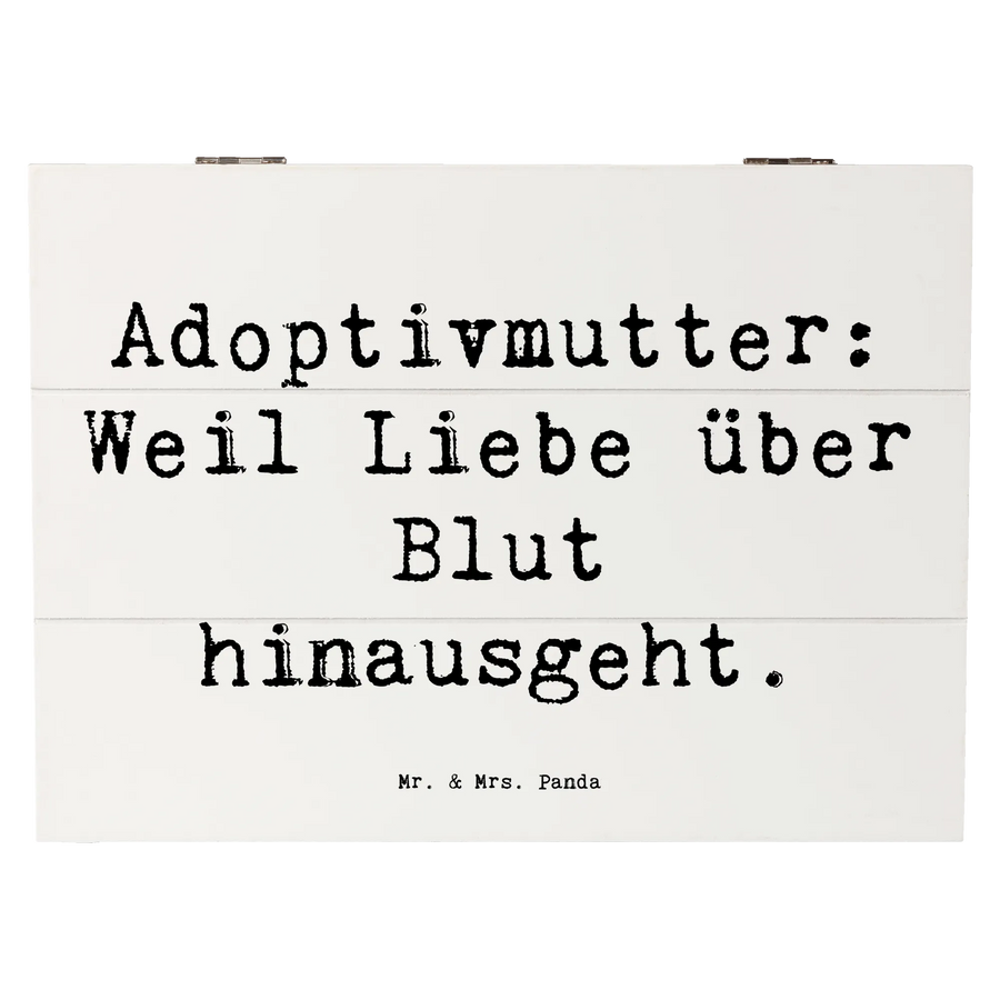 Die wunderschöne Holzkiste von Mr. & Mrs. Panda ist der perfekte Ort für all deine kostbaren Erinnerungen. Mit liebevollen Motiven und dem Spruch 'Adoptivmutter: Weil Liebe über Blut hinausgeht.' ist diese Kiste nicht nur ein Aufbewahrungsort, sondern auch ein Symbol für die ganz besondere Verbindung zu Adoptivmüttern.