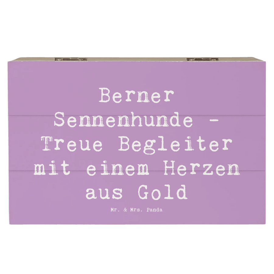 Die wunderschöne Holzkiste mit dem Motiv "Berner Sennenhund - Treue Begleiter mit einem Herzen aus Gold" von Mr. & Mrs. Panda ist das perfekte Geschenk für jeden Hundefan! Diese liebevoll gestaltete Erinnerungsbox eignet sich hervorragend als Aufbewahrungsort für all deine wertvollen Schätze und besonderen Erinnerungen. Egal ob Fotos, Kindheitserinnerungen, Geschenke zur Kommunion oder Konfirmation - diese Kiste bietet genug Platz für alles, was deinem Herzen nahe ist.