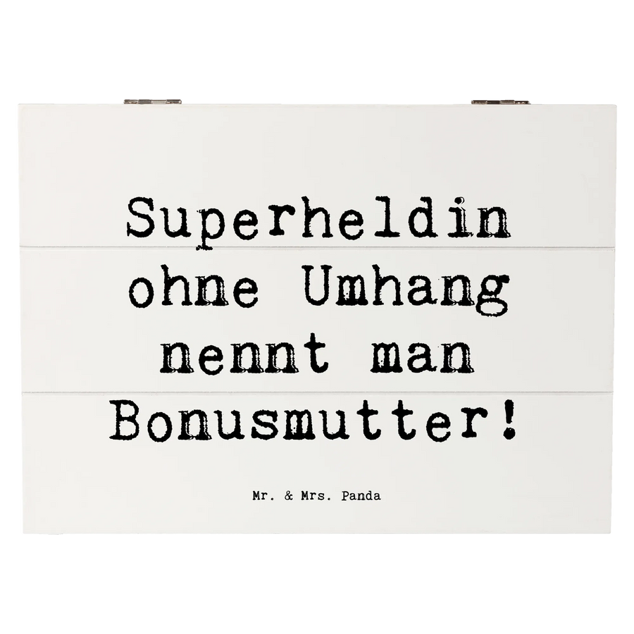 Die wunderschöne Holzkiste von Mr. & Mrs. Panda ist ein absolutes Must-have für jede Bonusmutter! Mit dem liebevollen Spruch "Superheldin ohne Umhang nennt man Bonusmutter!" wird diese Kiste nicht nur zum praktischen Aufbewahrungsort, sondern auch zu einem emotionalen Erinnerungsstück.