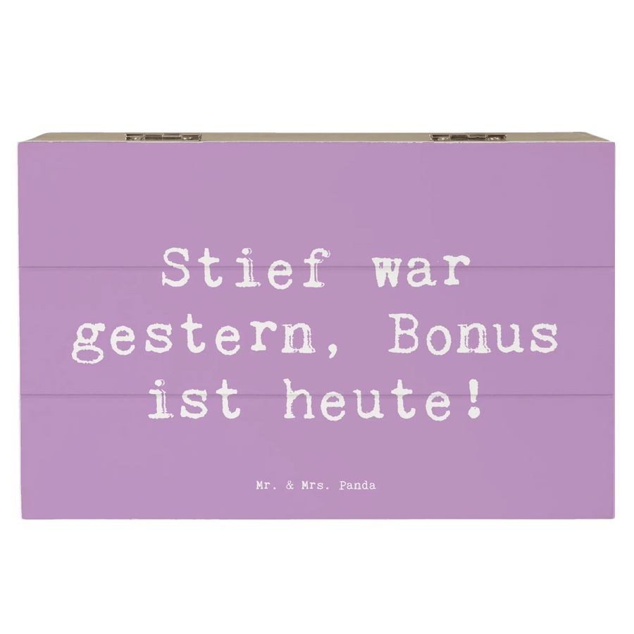 Die sentimentalen Worte "Stief war gestern, Bonus ist heute!" machen die Kiste zu einem wertvollen Geschenk, das Fakt und Gefühl unter einen Hut bringt.