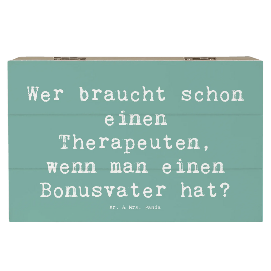 Eine wunderschöne Holzkiste von Mr. & Mrs. Panda – das perfekte Geschenk für Deinen Bonusvater! Bedruckt mit dem charmanten Spruch „Wer braucht schon einen Therapeuten, wenn man einen Bonusvater hat?“ ist diese Holzbox eine liebevolle Art, Danke zu sagen und besondere Erinnerungen stilvoll aufzubewahren. 😊