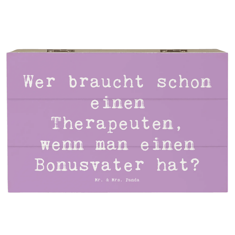 Eine wunderschöne Holzkiste von Mr. & Mrs. Panda – das perfekte Geschenk für Deinen Bonusvater! Bedruckt mit dem charmanten Spruch „Wer braucht schon einen Therapeuten, wenn man einen Bonusvater hat?“ ist diese Holzbox eine liebevolle Art, Danke zu sagen und besondere Erinnerungen stilvoll aufzubewahren. 😊