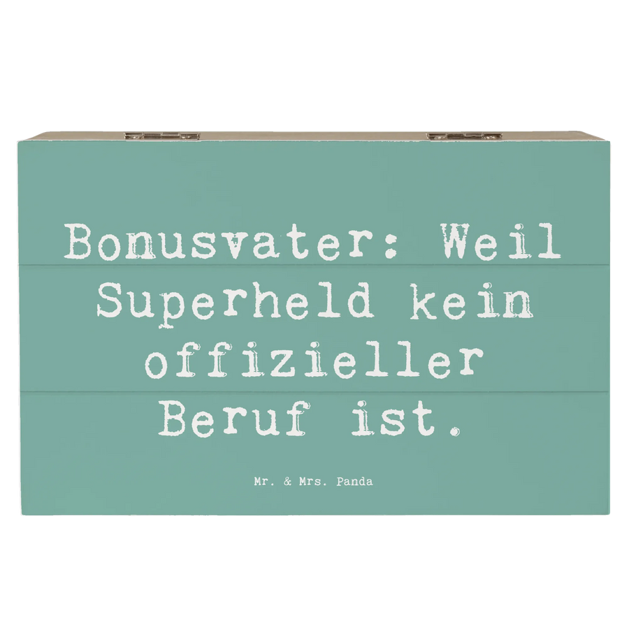 Suchst Du das perfekte Geschenk für Deinen Bonusvater? Dann ist die wunderschöne Holzkiste von Mr. & Mrs. Panda genau das Richtige! Mit dem liebevollen Spruch "Bonusvater: Weil Superheld kein offizieller Beruf ist." wird diese Kiste zu einem ganz besonderen Aufbewahrungsort für all die kleinen Schätze und Erinnerungen, die Ihr zusammen teilt.