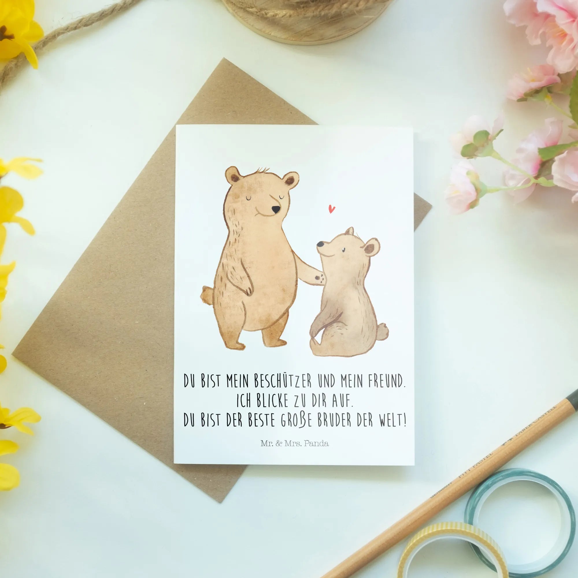 Kartka okolicznościowa Niedźwiedź Starszy brat - z napisem - Biały