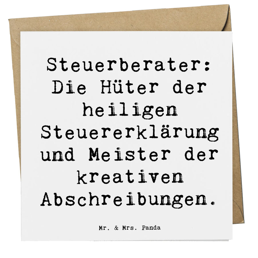 Das Motiv zeigt den Spruch: "Steuerberater: Die Hüter der heiligen Steuererklärung und Meister der kreativen Abschreibungen." Dieser humorvolle und gleichzeitig respektvolle Satz bringt die Wertschätzung für die wichtige Arbeit eines Steuerberaters auf den Punkt und macht die Karte zu einem absoluten Hingucker.